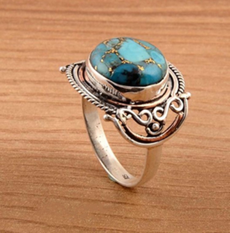 Weiya wish Vintage Gemstone Turquoise Ring Bridal Wedding Engagement Ring Men's and Women's Ring Jewelry