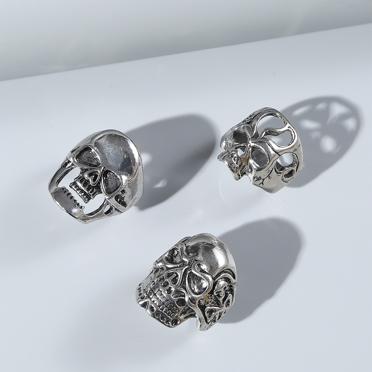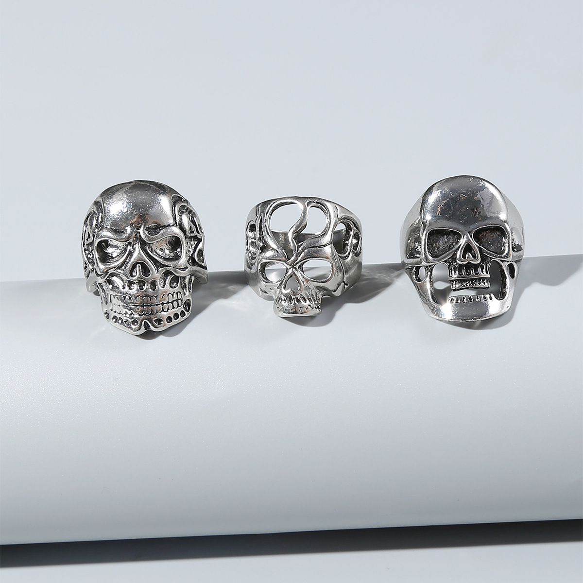 European and American ethnic style men's ring personality alloy hollow skull 3 pieces suit ring in stock direct supply