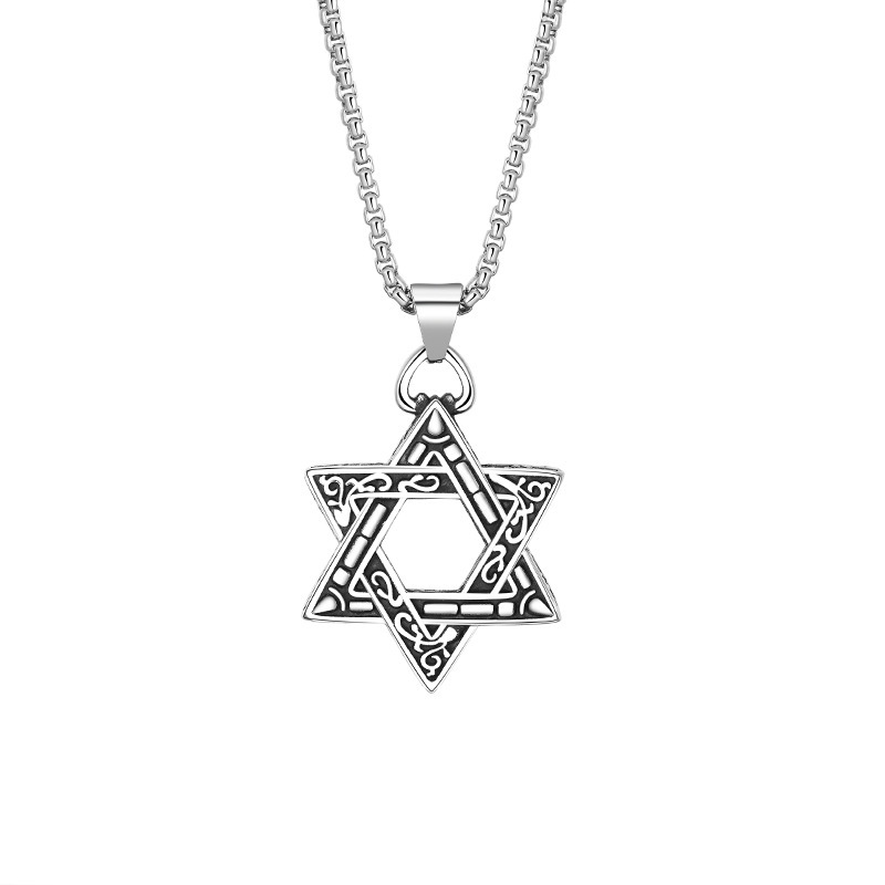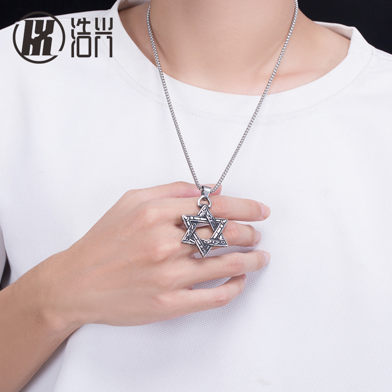 六芒星吊坠钛钢男士项链潮不褪色欧美时尚嘻哈风气质小众饰品百搭