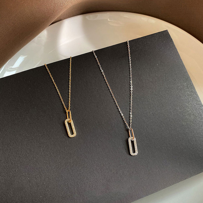 Geometry Necklace Women's Light Luxury Niche Design Sense Advanced 2021 New ins Style Trendy Flash Diamond Clavicle Simple