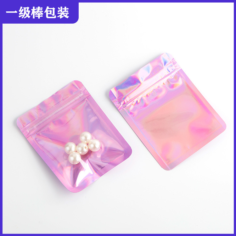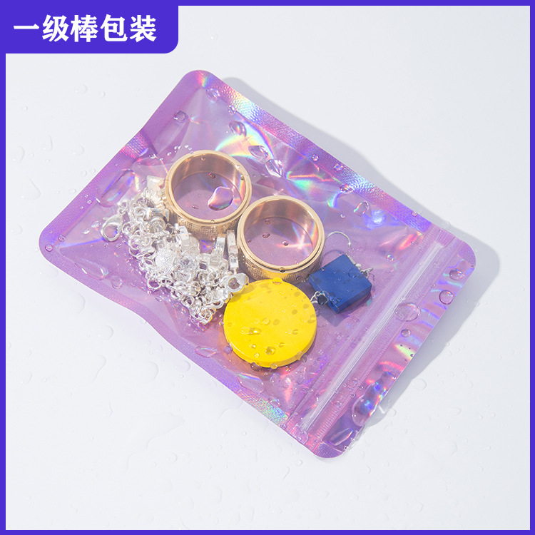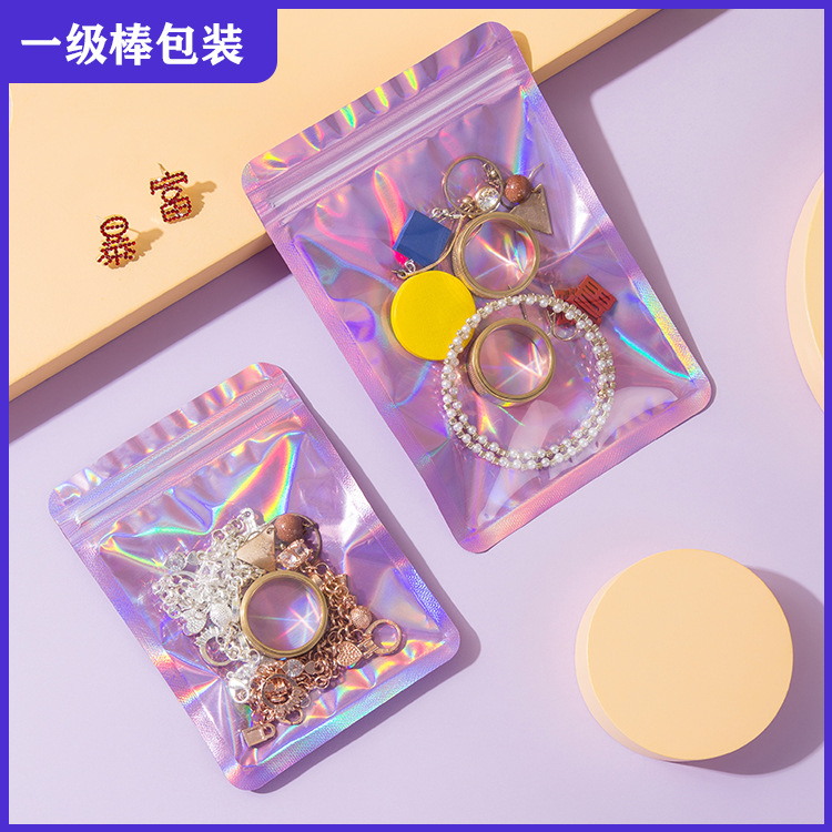 Jewelry earrings packaging bag necklace ziplock bag holographic laser inner printing color plastic bag anti-oxidation bag food bag