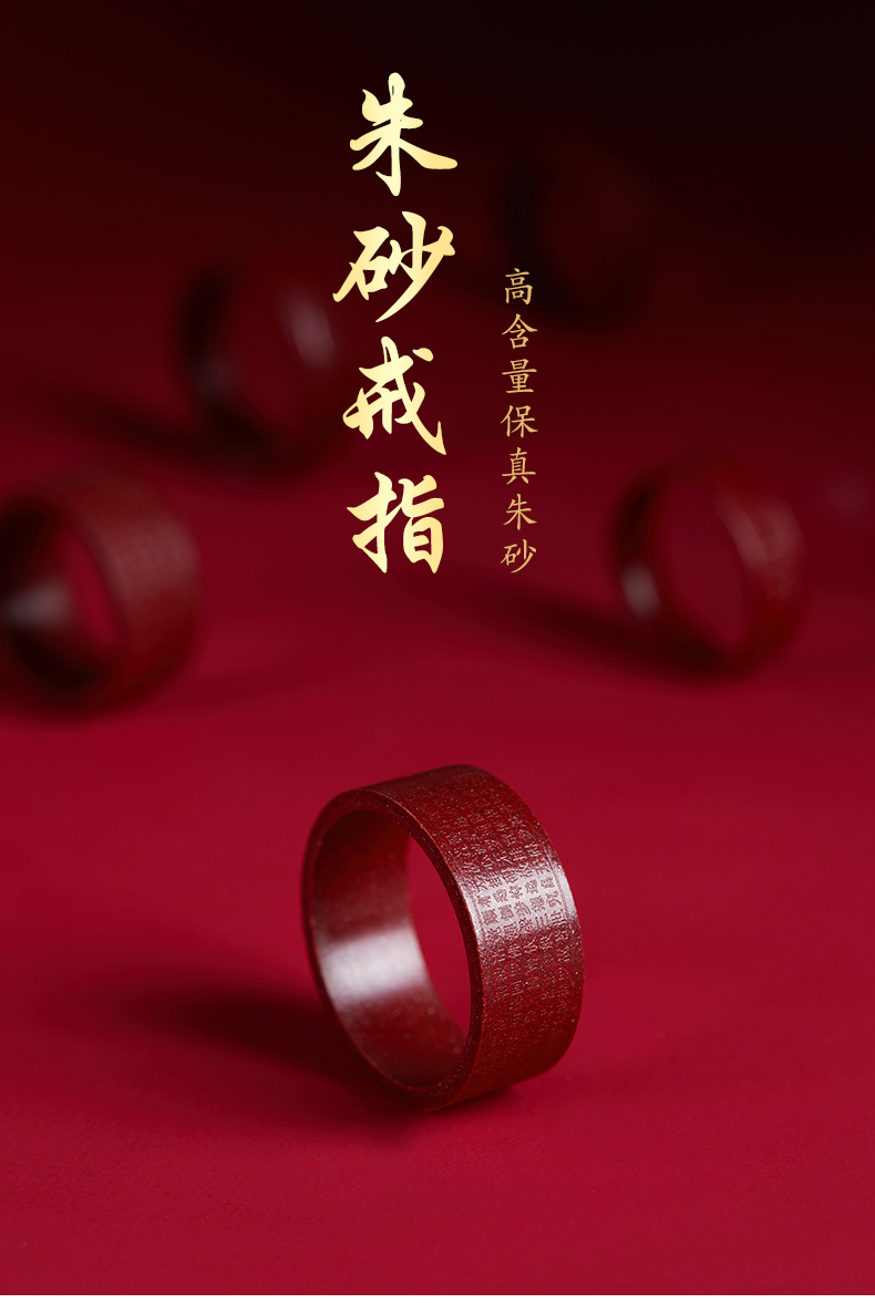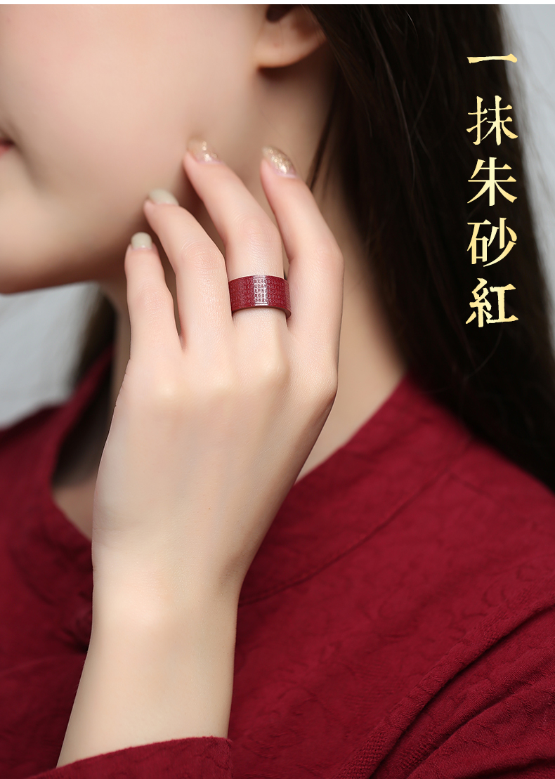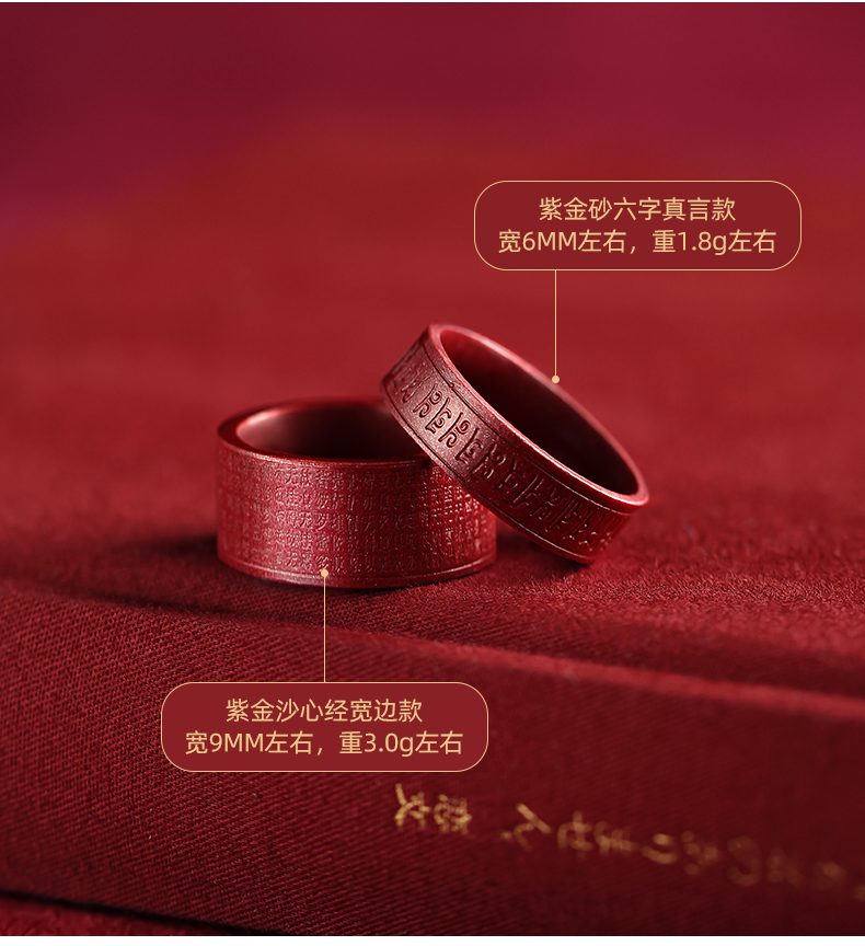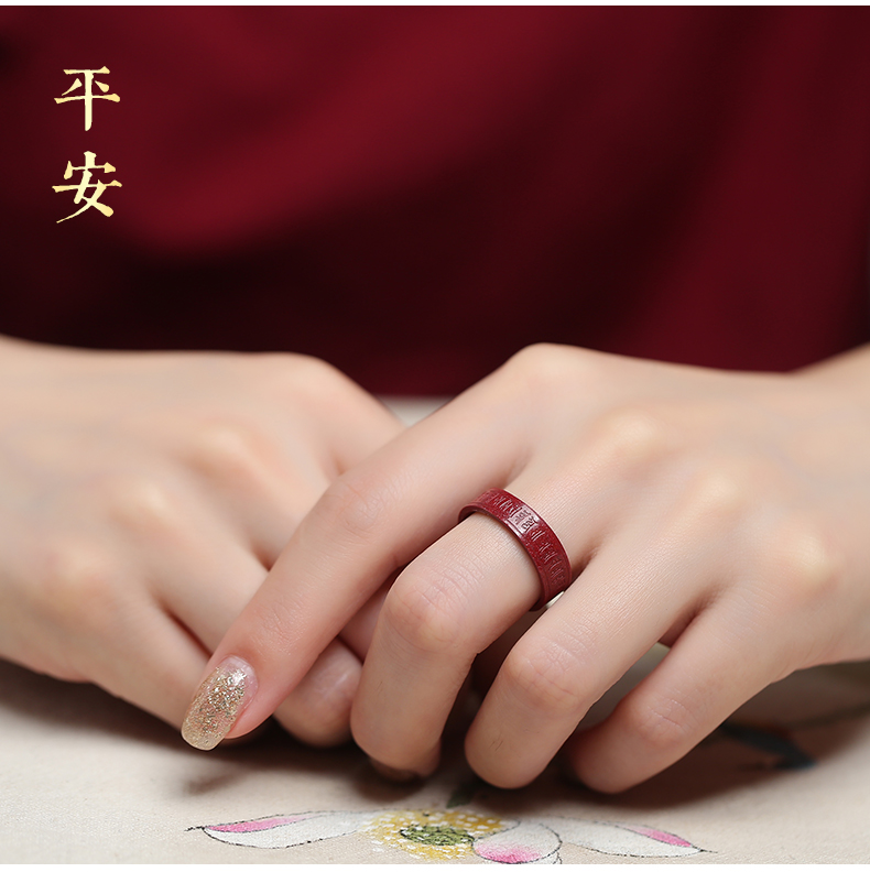 Factory Direct Sales Diamond Hot-Selling Raw Ore Pure Cinnabar Heart Sutra Ring Zodiac Year Men's Six-Character Mantra Ring