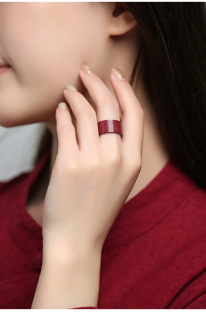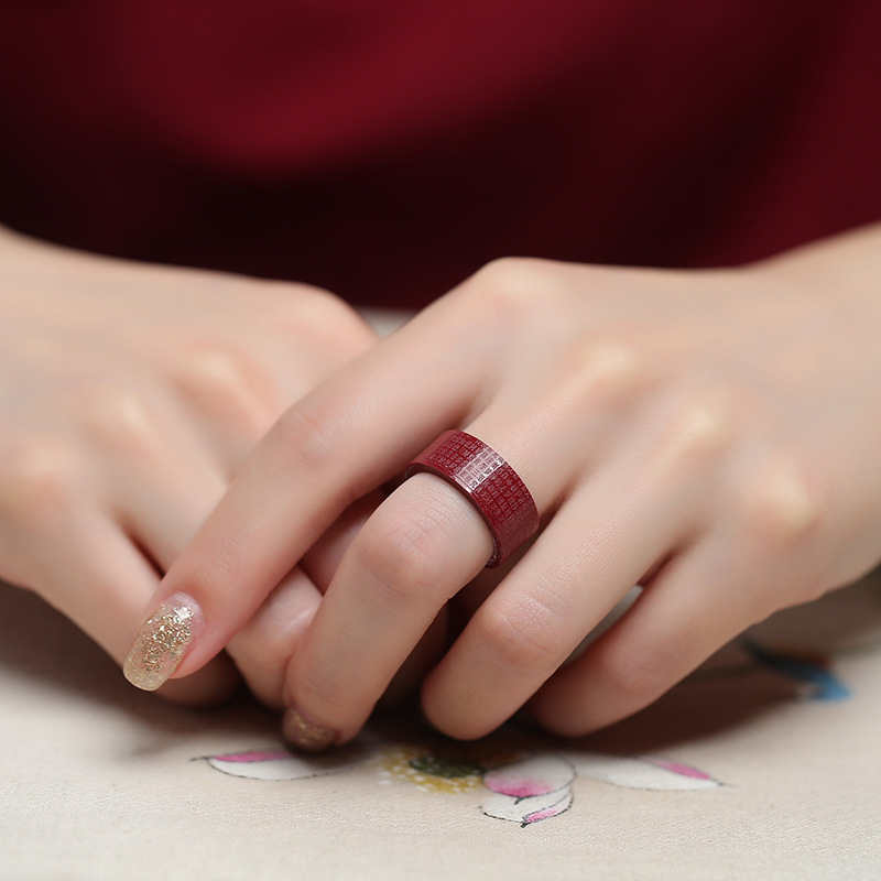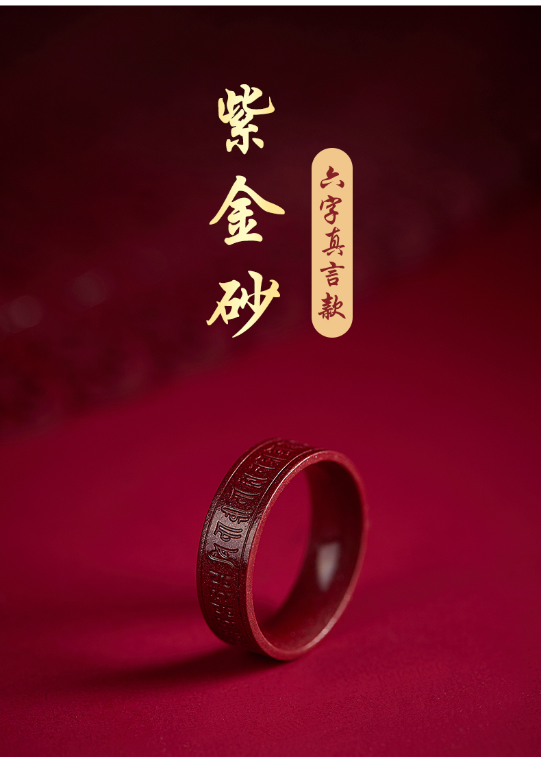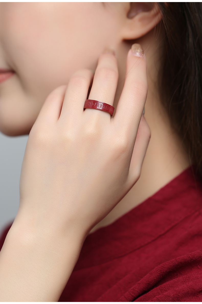 Factory Direct Sales Diamond Hot-Selling Raw Ore Pure Cinnabar Heart Sutra Ring Zodiac Year Men's Six-Character Mantra Ring