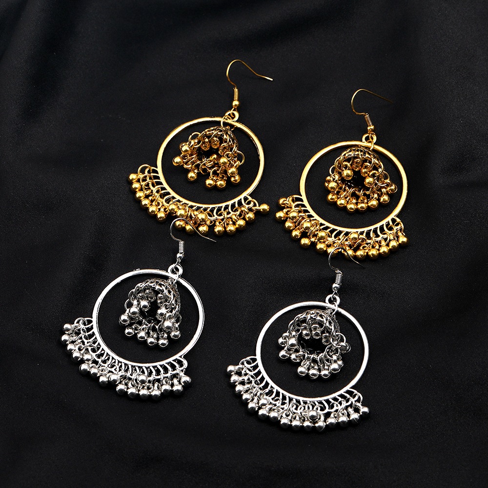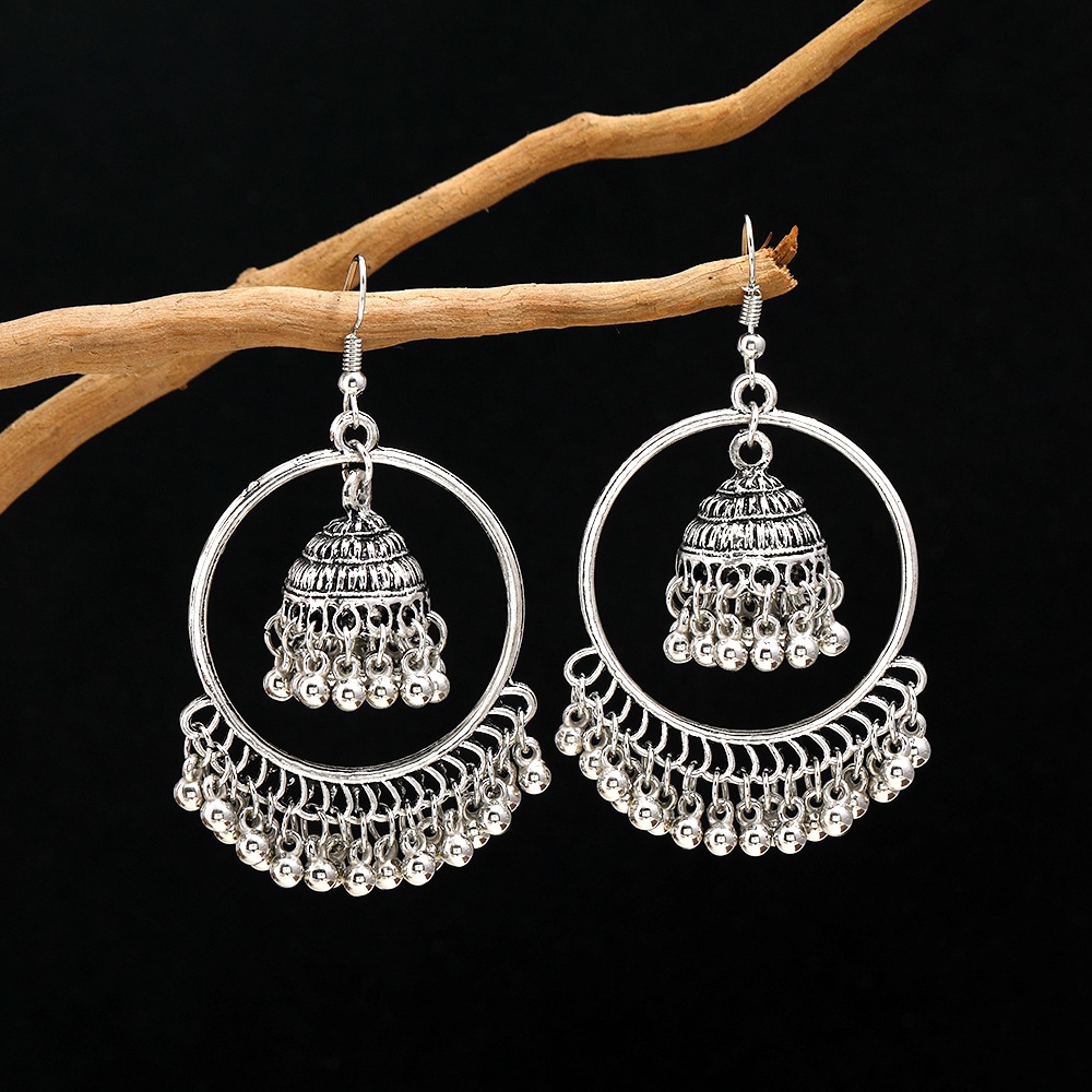 产品名称:跨境夸张时尚饰品批发 欧美复古个性大圈流苏耳环 民族风个性耳饰