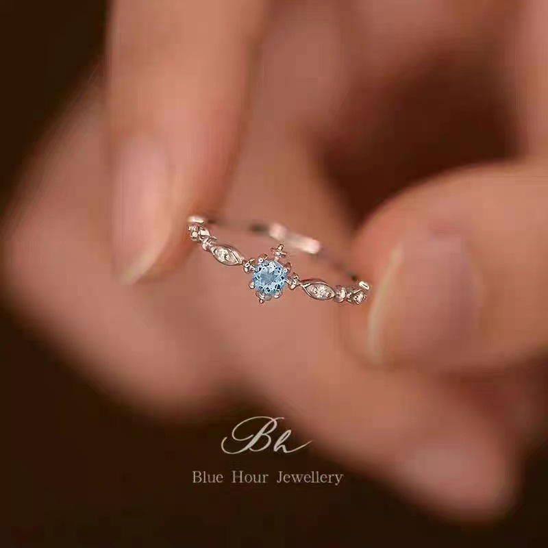 Live Streaming Japanese and Korean New Topaz Sapphire Ring Niche Design Zircon Ring Tail Ring Girlfriend