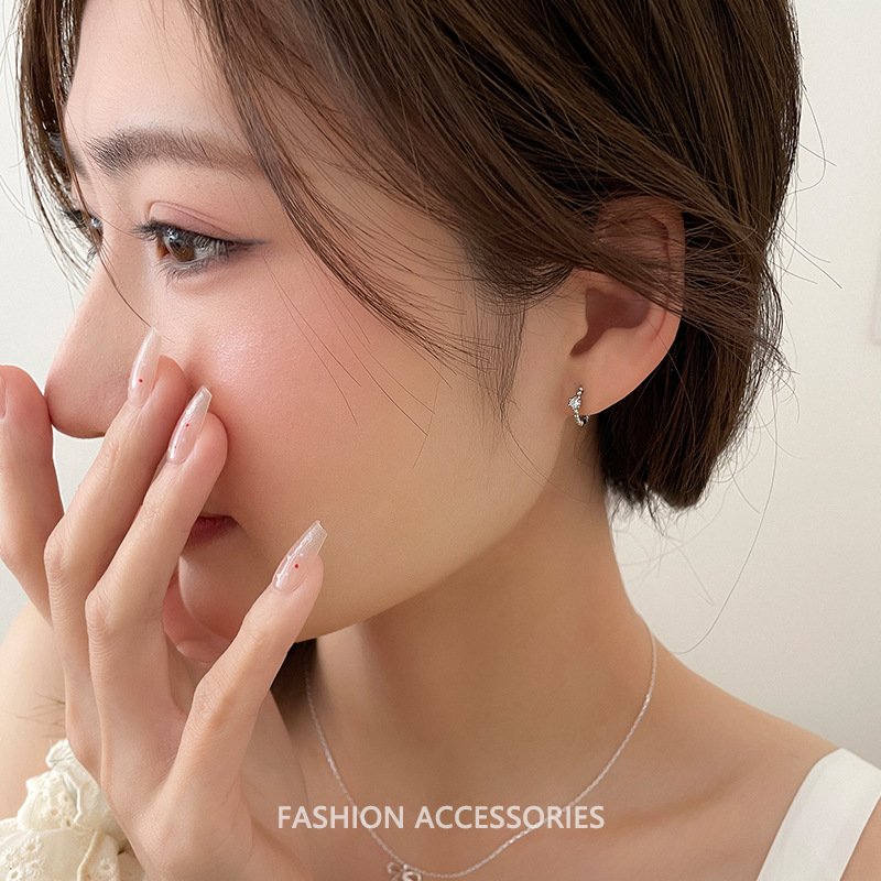 Round Small Earrings Women's Diamond Earrings Korean Elegant High-class Atmospheric Loop Small Earrings Internet Celebrity