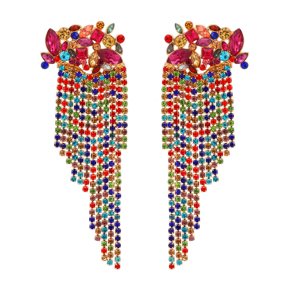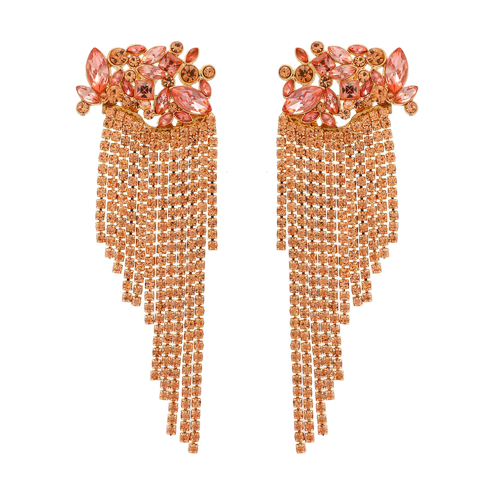 Stepping into factory direct fashion small fresh tassel pendant sweet beauty Street temperament Joker rhinestone jewelry earrings