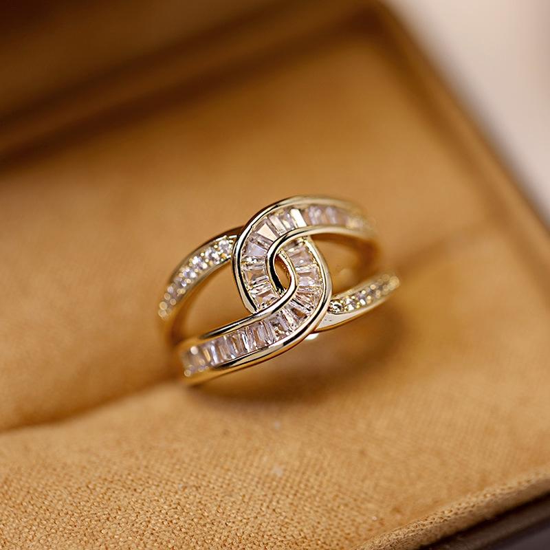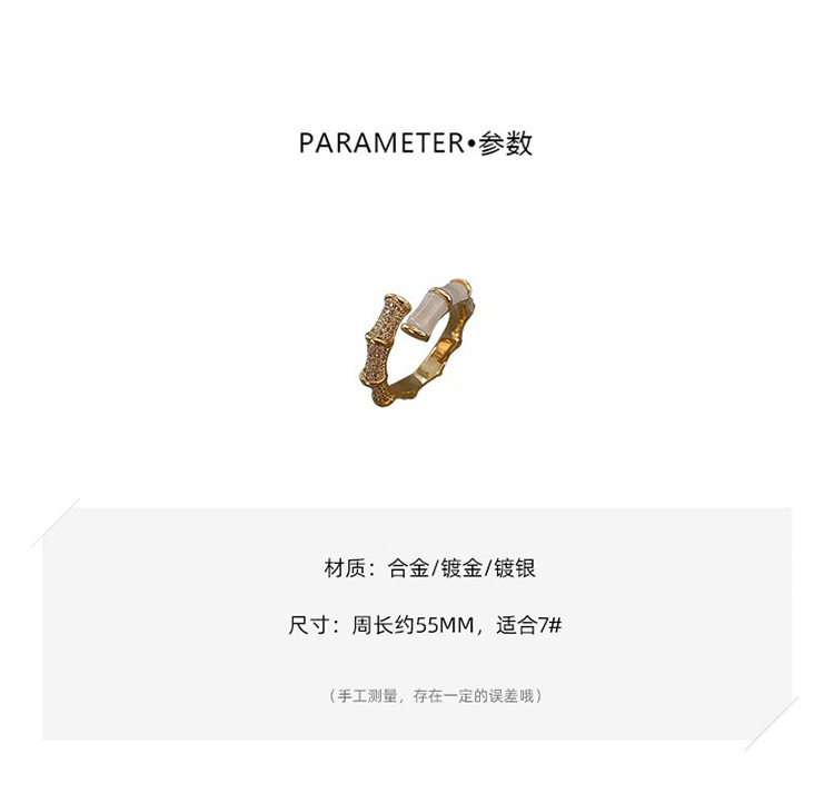 Backgammon Bamboo Ring Women's Fashionable Personalized Niche Design High-grade Sense Zircon Open Ring Korean Style Internet Celebrity Ring
