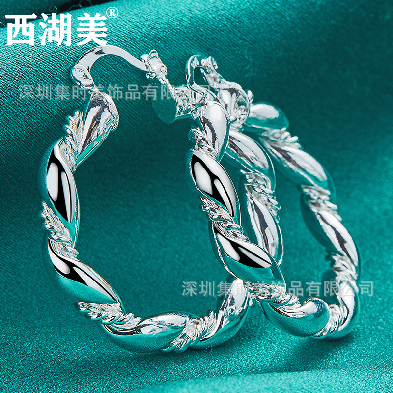 35mm Wave Twisted Rope Twisted Earrings Silver Earrings Women's Jewelry West Lake Beauty Jewelry