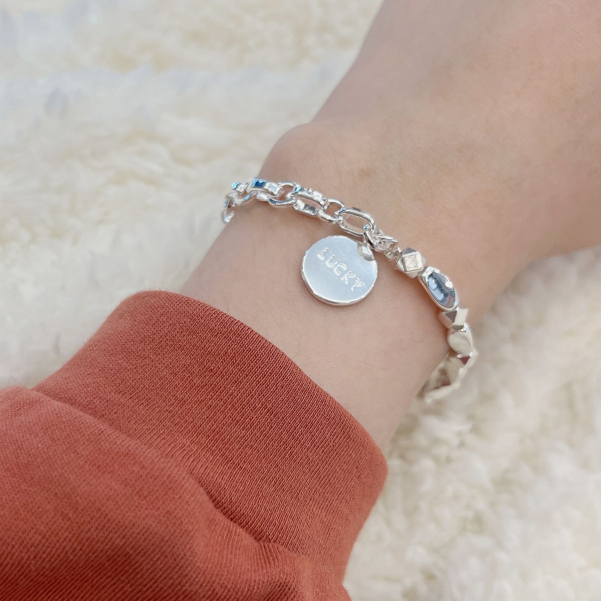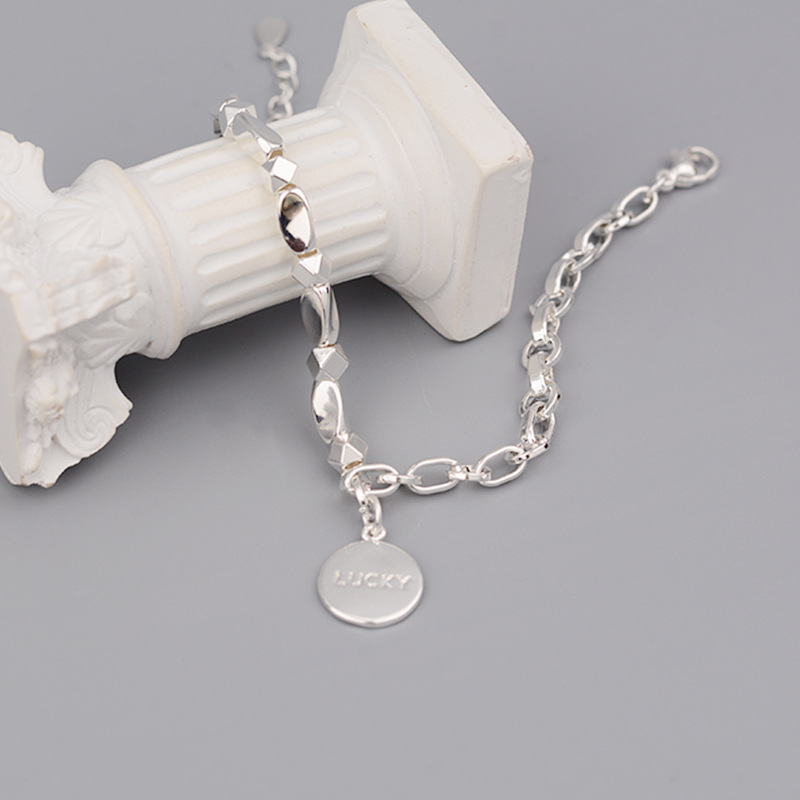 New Shattered Silver Mix and Match Letters lucky Bracelet Women's ins Hip-Hop High-End Personalized Simple All-Match Bracelet