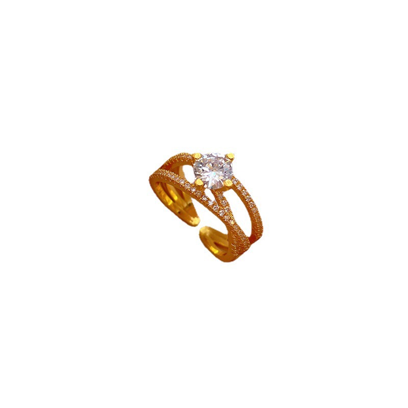 [Real Gold Electroplating] Open Ring Twisted Cross Personality Ring Food Ring Internet Celebrity Same Style Simple Cold Style