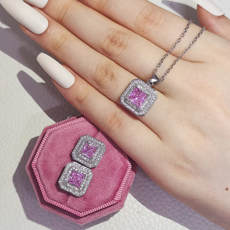 AliExpress supply small fashion Joker square necklace earrings Dubai jewelry suit x503-e668