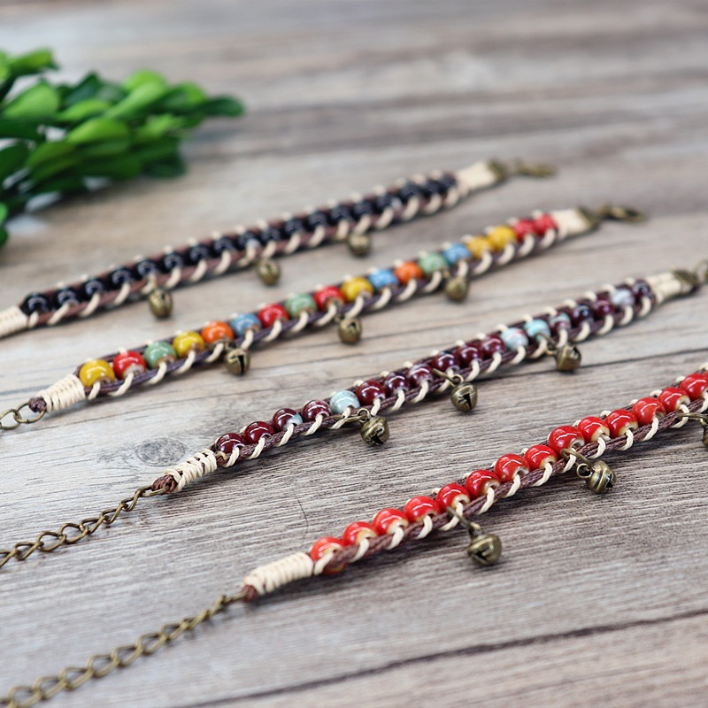 Handmade Woven Mori Ceramic Bell Bracelet Women's Fresh All-match Retro Simple Beautiful Color Bracelet Jewelry