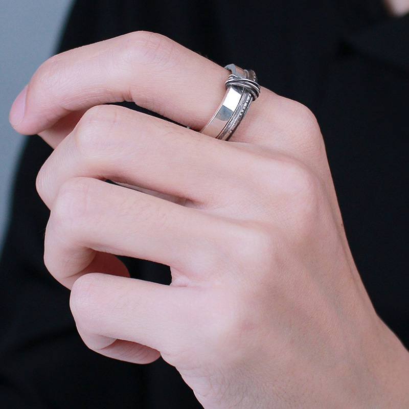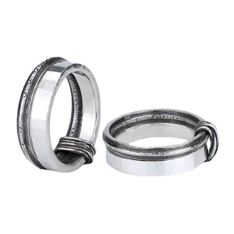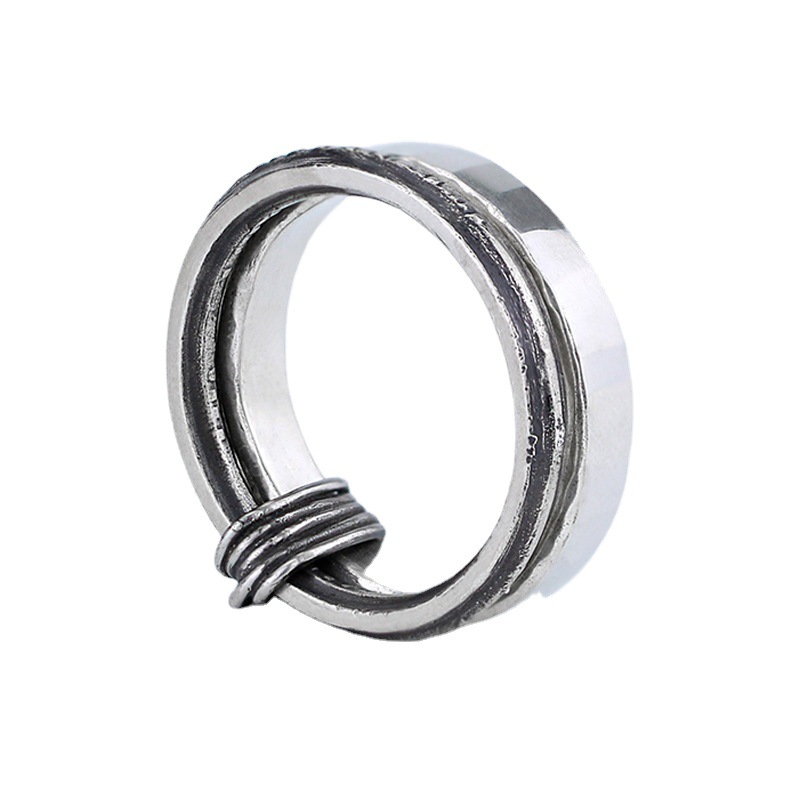 Taigu Werkstatt Munchen handmade hammered silk double ring Thai silver unisex ring