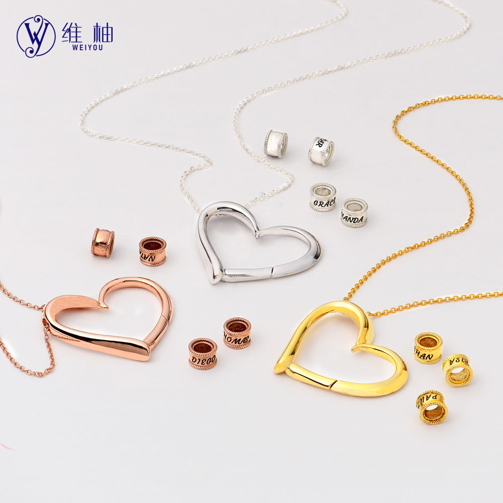 【产品材质】:铜(心形吊坠/刻字珠子)+不锈钢(链条)