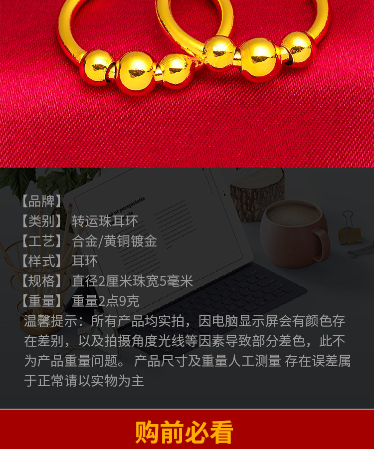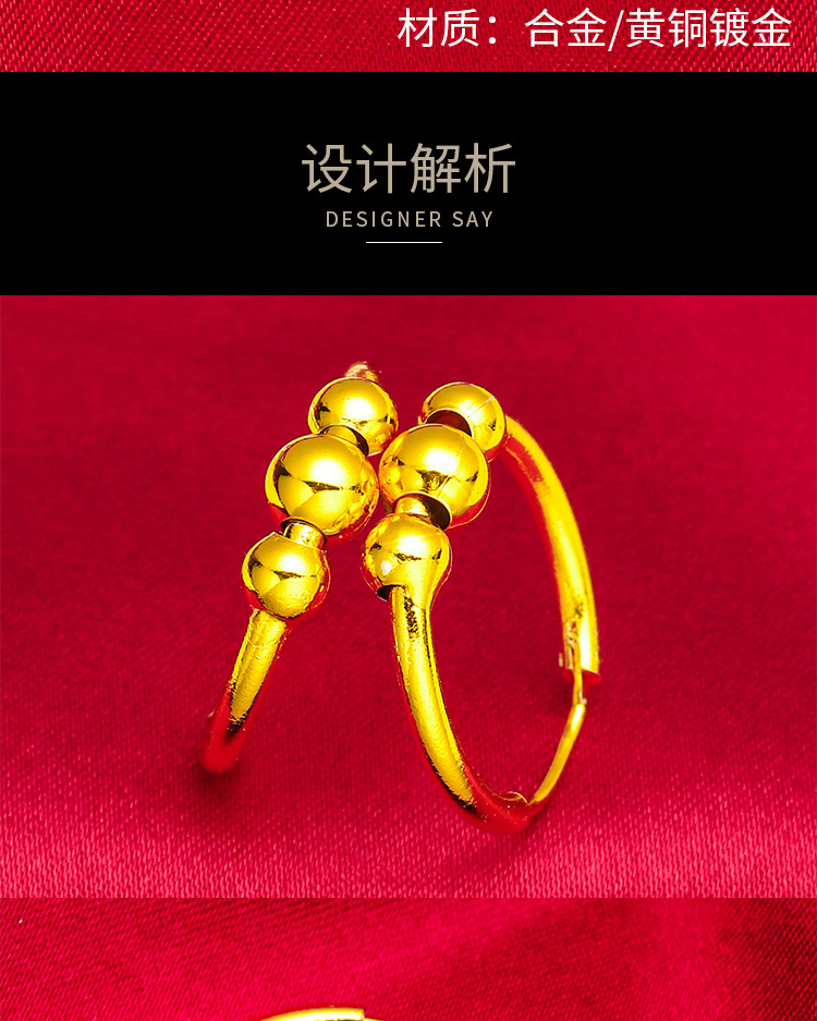 Vietnam sand gold transfer beads earrings gold plated smooth small gold beads transfer beads fashion temperament women's earrings jewelry