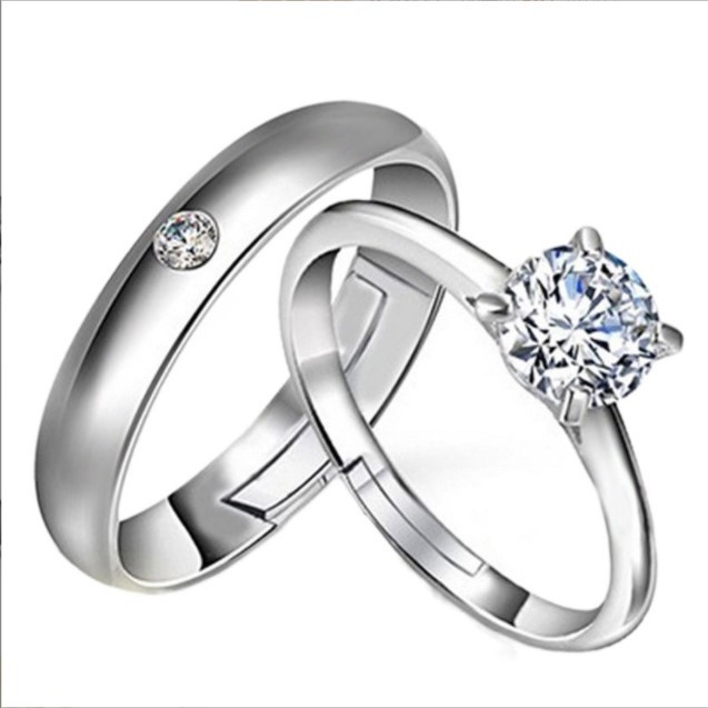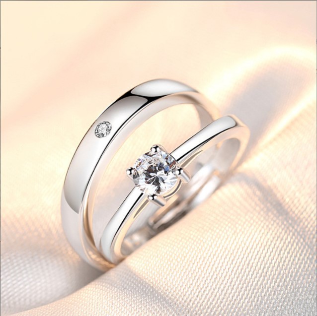Explosive Temperament Simulation Diamond Men and Women Couple Live Wedding Ring Copper Silver Plated with Single Diamond Opening Ring Jewelry