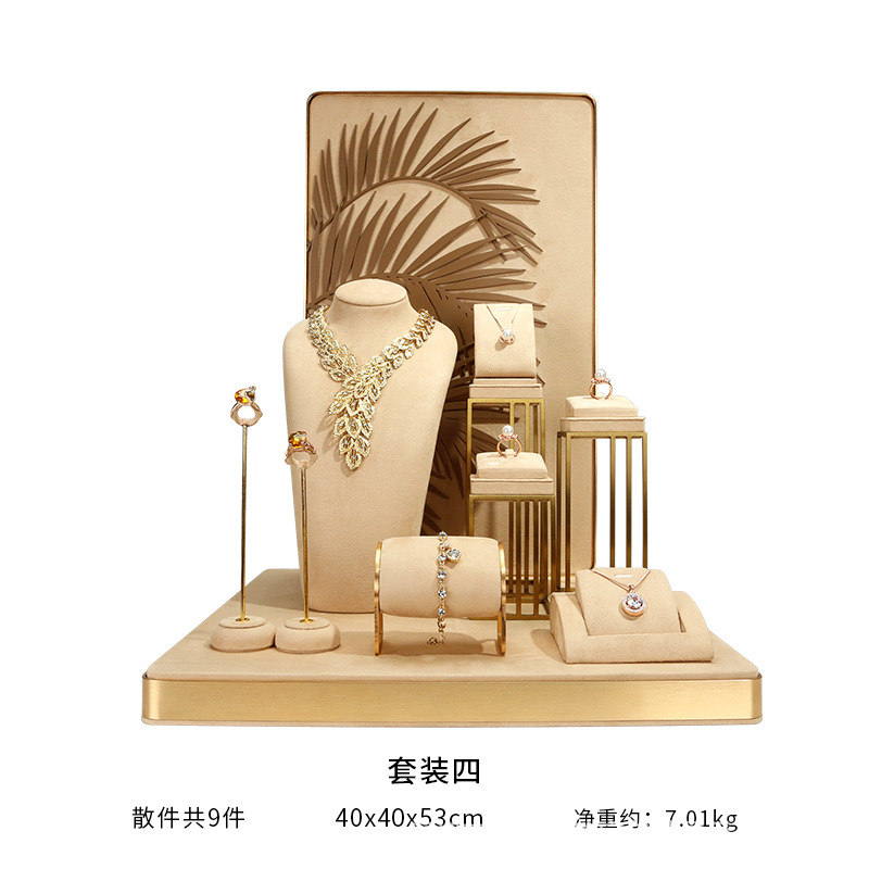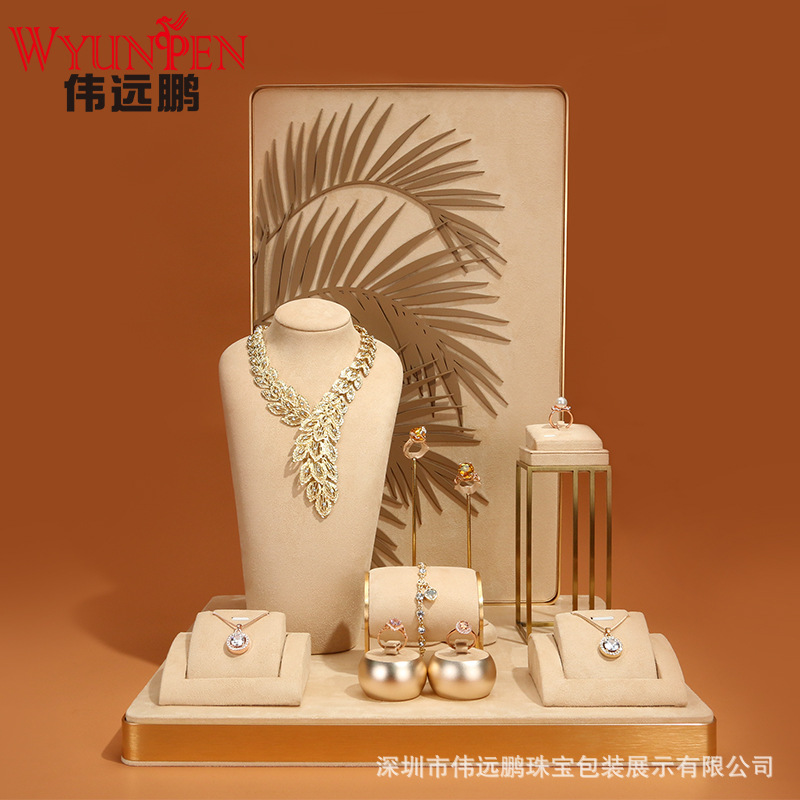 Color: 526-khaki velvet leather necklace rack H1 7x7x27.5cm