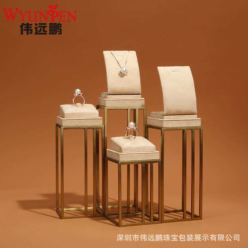 Color: 527-khaki velvet leather necklace rack H2 7x7x24.5cm