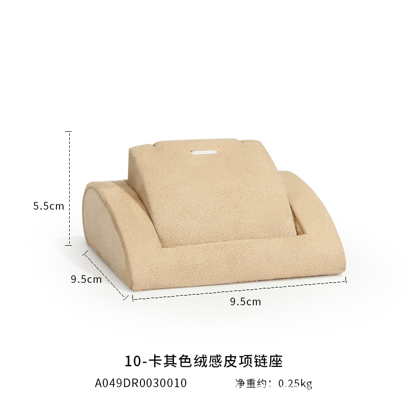 Color: 10-Khaki velvet leather necklace holder 9.5x9.5x5.5cm