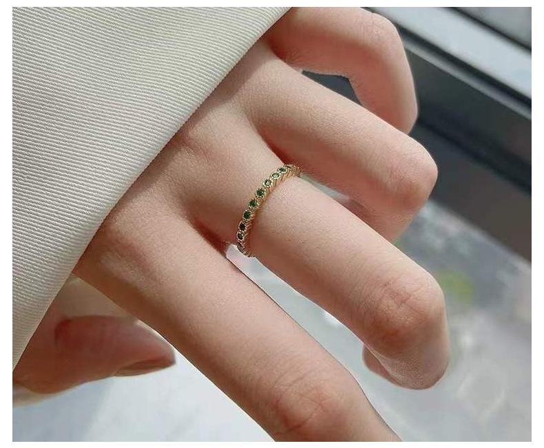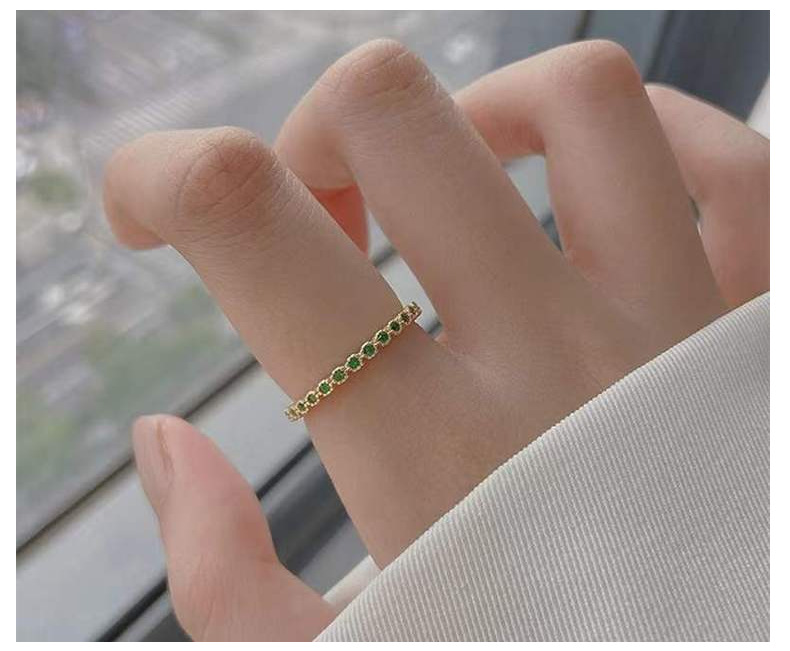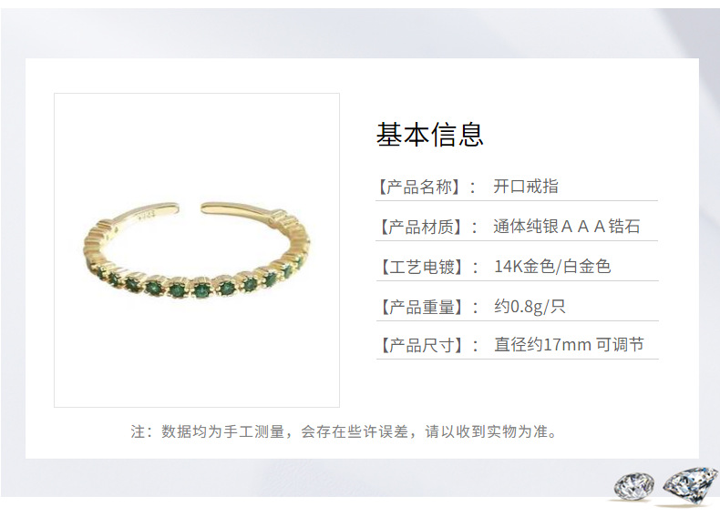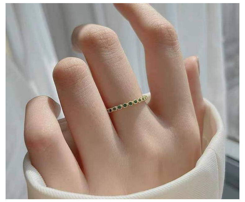 Japanese and Korean S925 Sterling Silver Plated 14K Gold Grandmother Green Opening Ring Niche Design High-grade Sense Ring for Women Wholesale