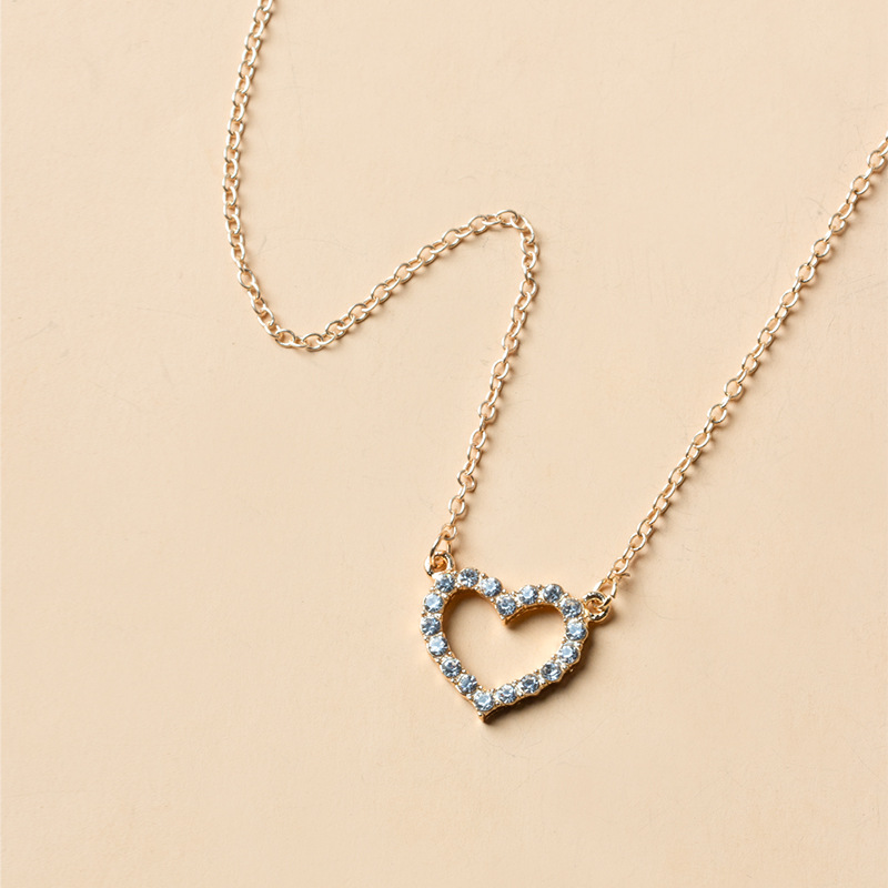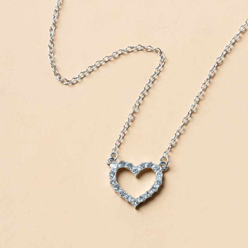 Wholesale Alloy Heart Necklace European and American Cross-Border Jewelry Versatile Diamond-Studded Collarbone Chain Women's Wave Chain High-End Neck Chain