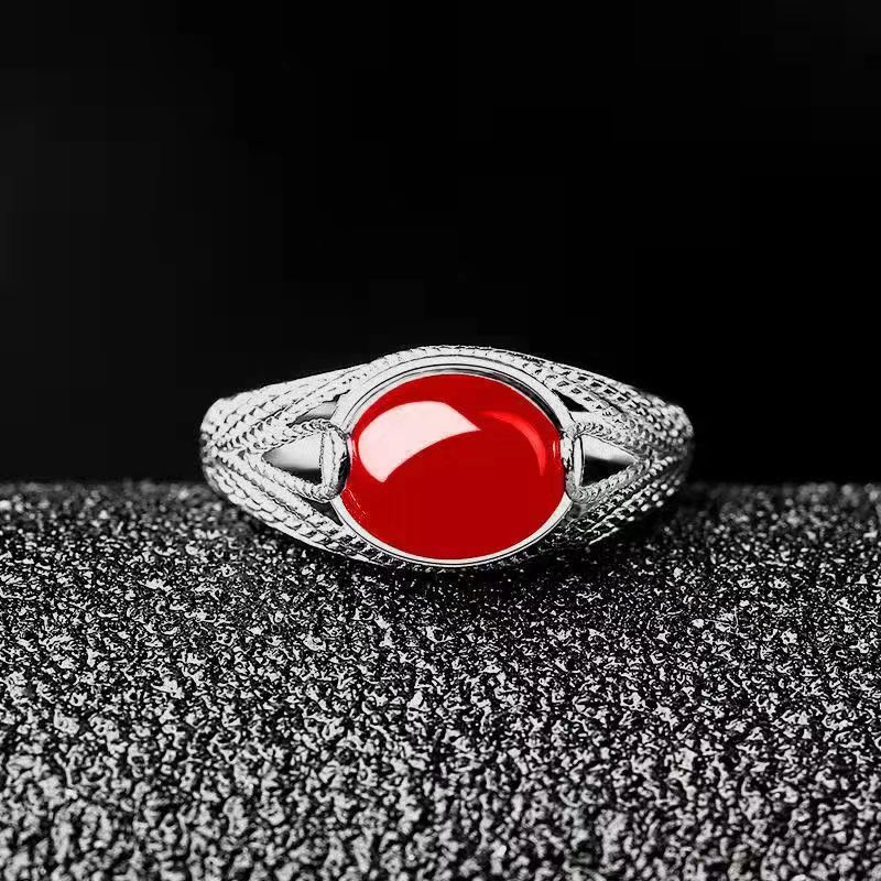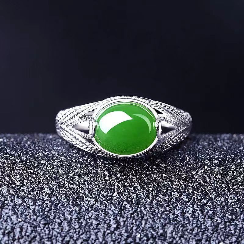 Silver-plated Fashion Ethnic Style Vintage Ring Women's Green Chalcedony Adjustable Ring Simple Green Agate Women's First Jewelry