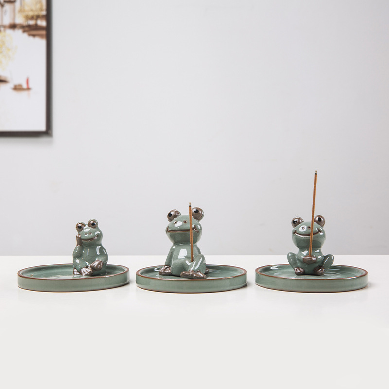 Cross-border new ceramic incense burner line incense frog incense insert Ge kiln incense holder mini incense rack Zen tea pet incense holder ornaments
