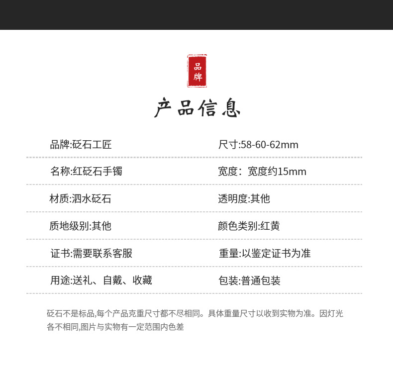 Color: Red bianstone bracelet 58mm