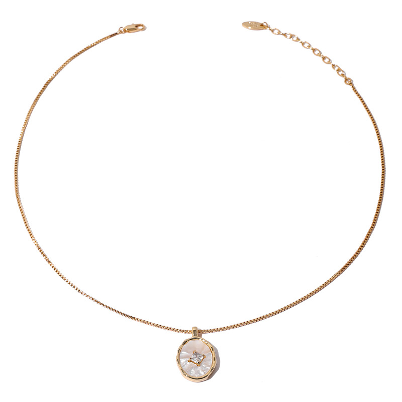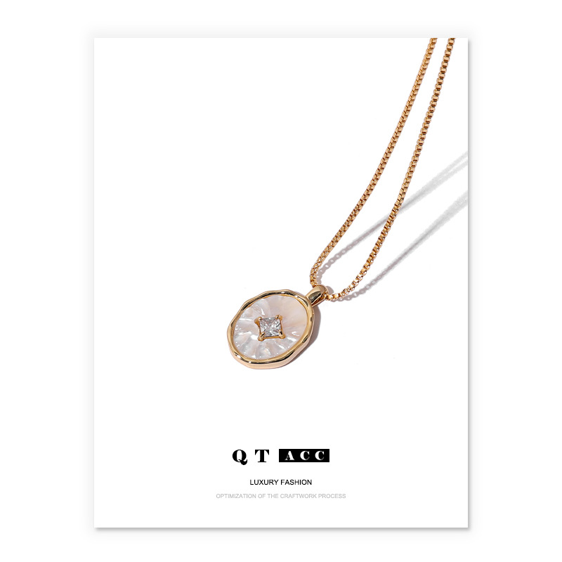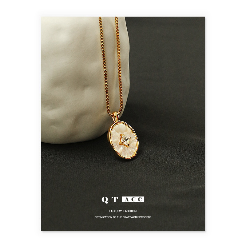 Brass Real Gold Plated Natural Mother Shell Micro-inlaid Zircon Gas Texted High Quality Natural White Butterfly Shell Pendant Shell Necklace Female