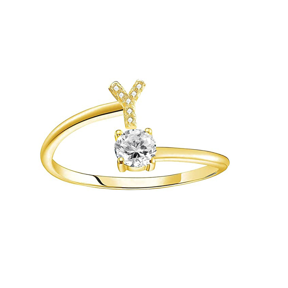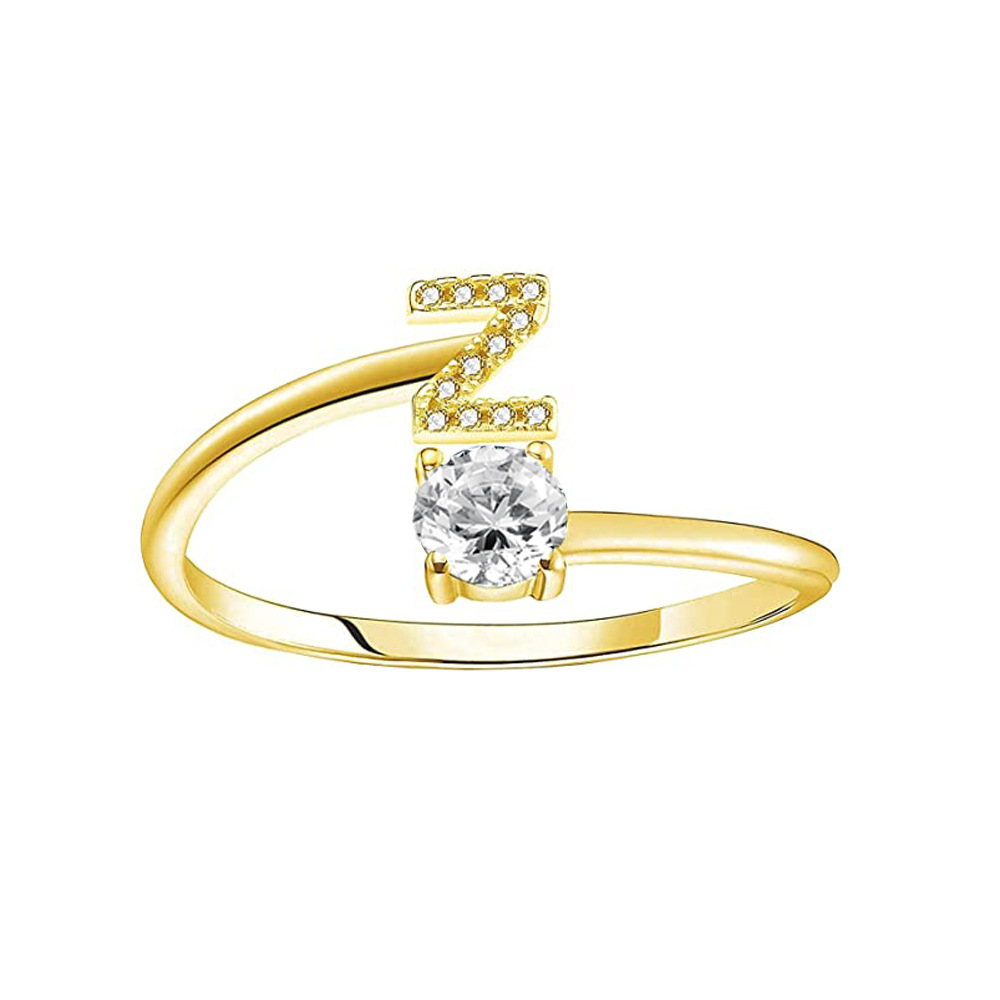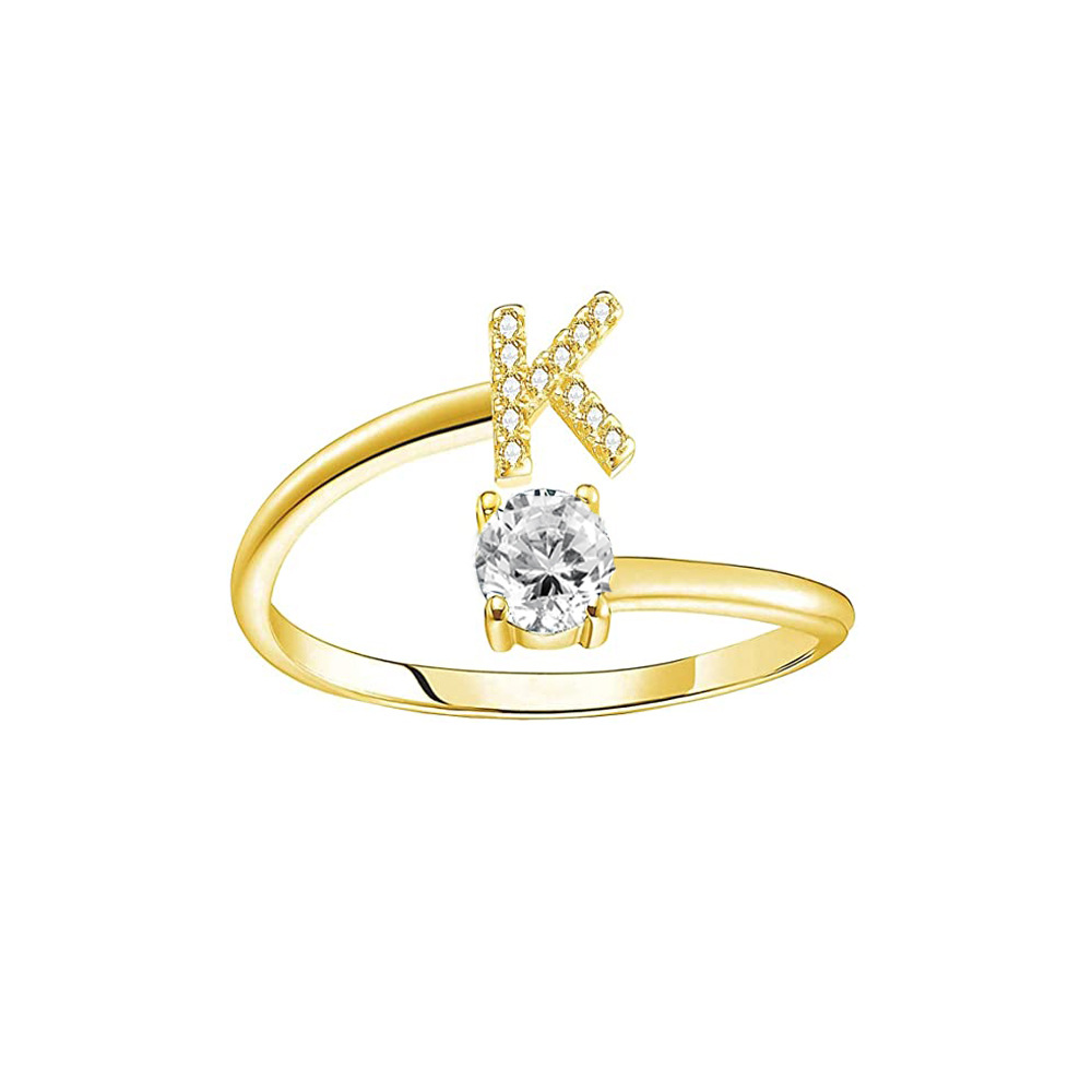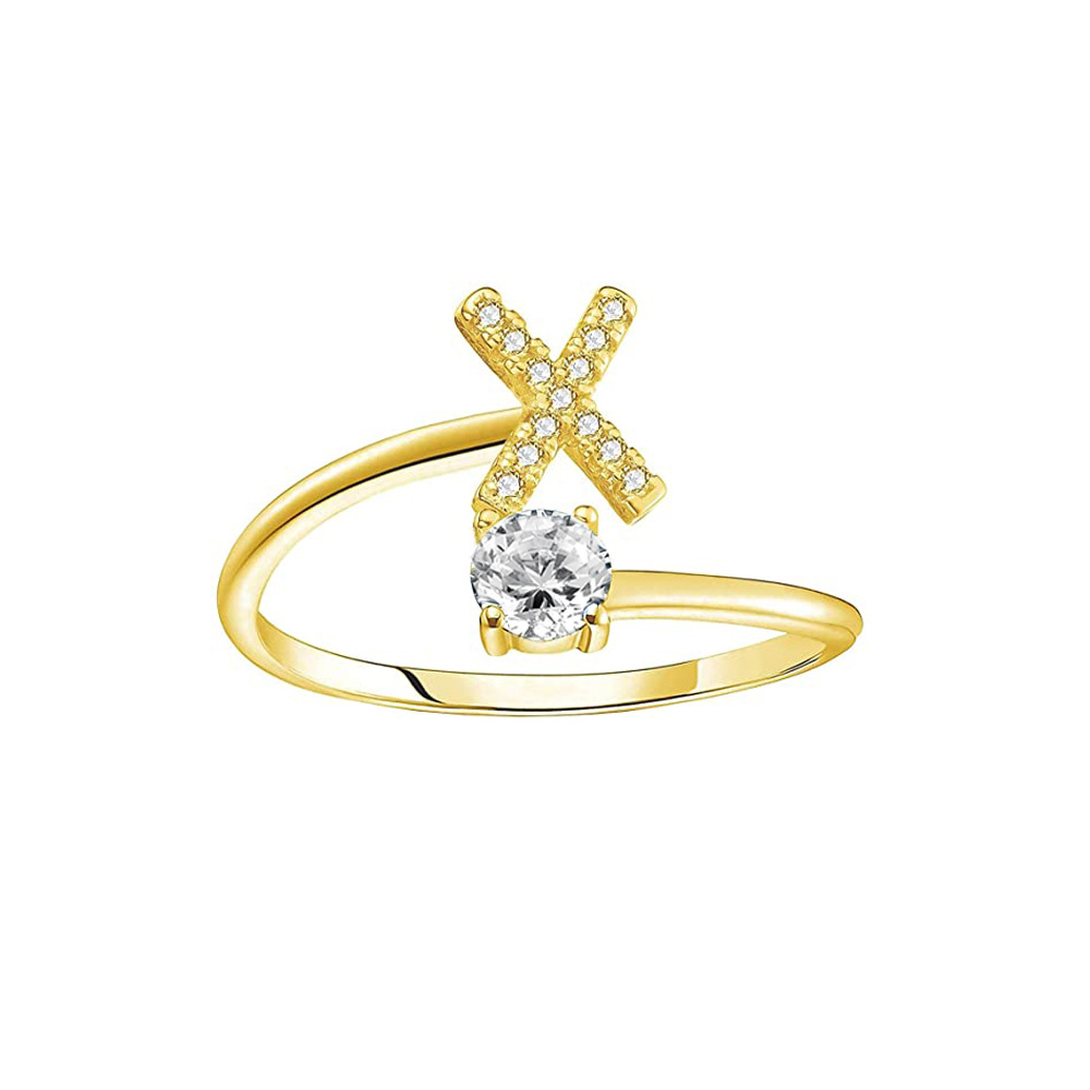 Cross-border source 925 sterling silver 26 gold letter ring Women's temperament fashion ins opening adjustable ring