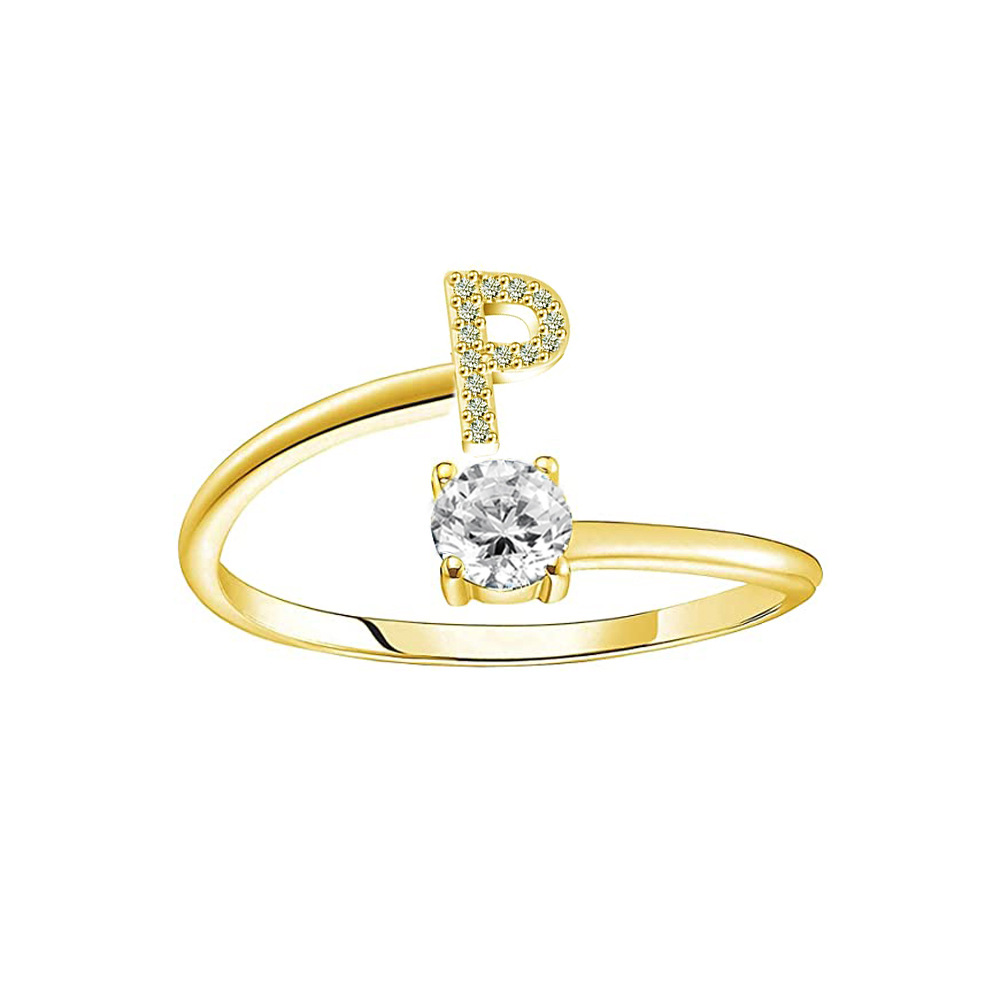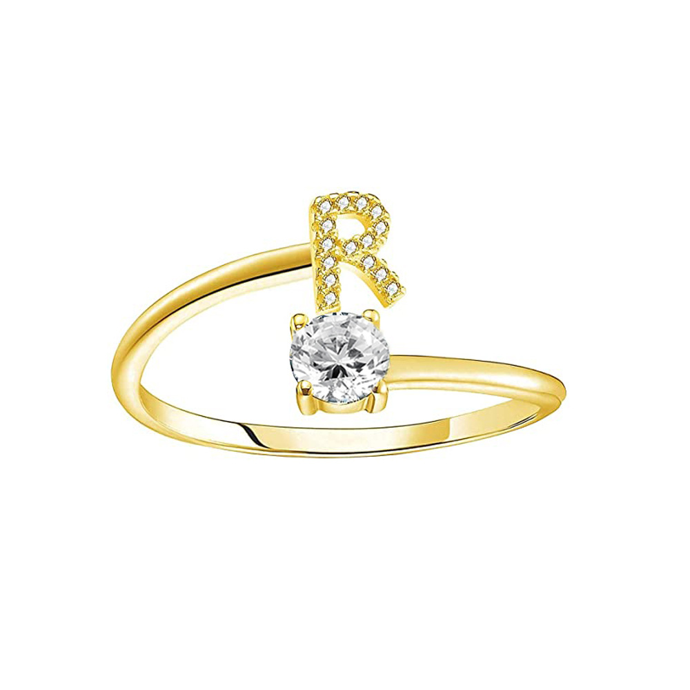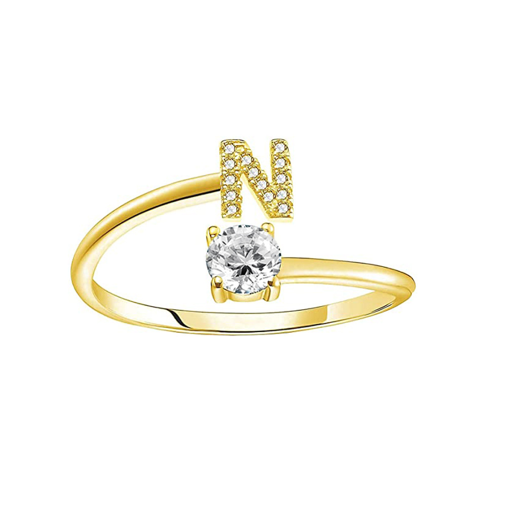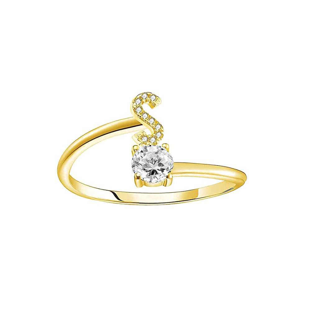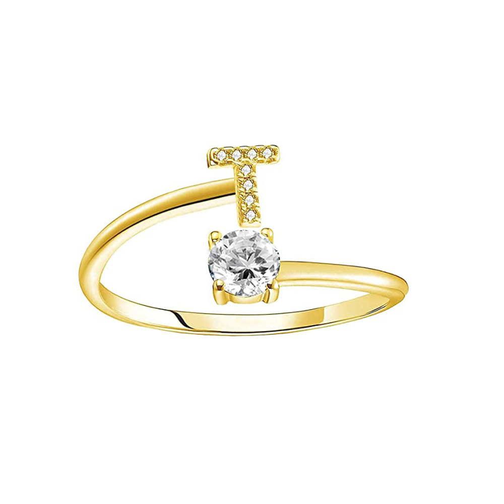 Cross-border source 925 sterling silver 26 gold letter ring Women's temperament fashion ins opening adjustable ring