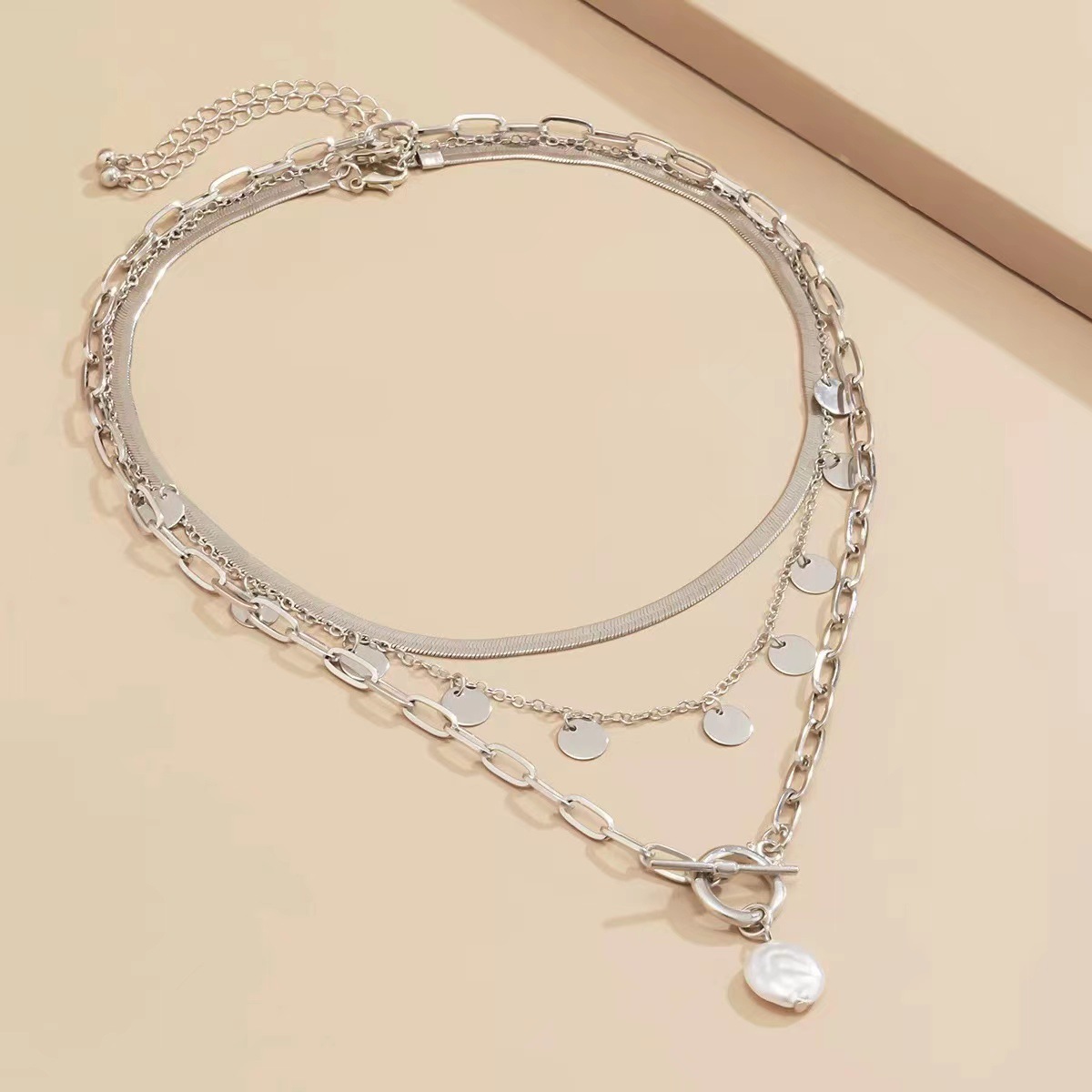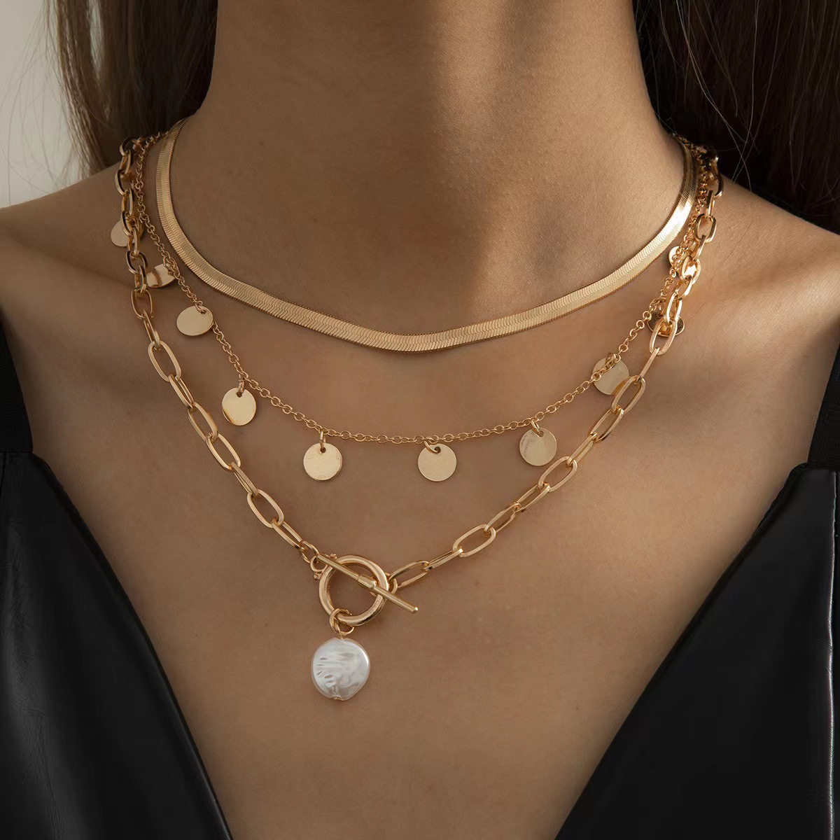 European and American Cross-border Jewelry Simple Retro Geometric Snake Bone Chain Necklace Women's Elegant Sexy Round Button Necklace