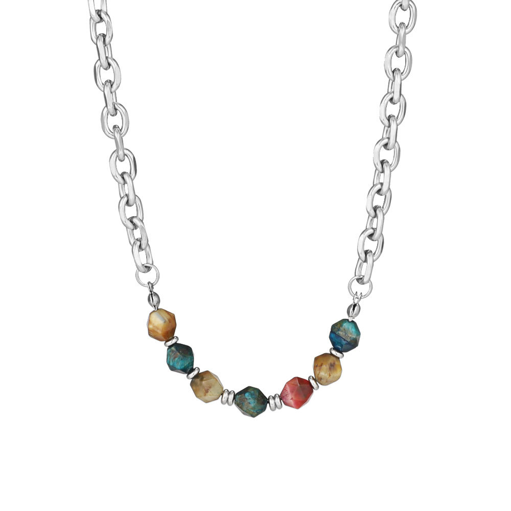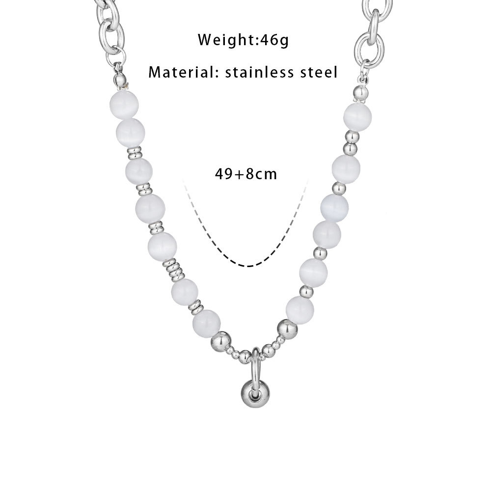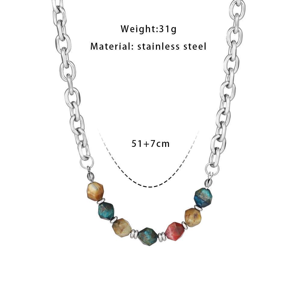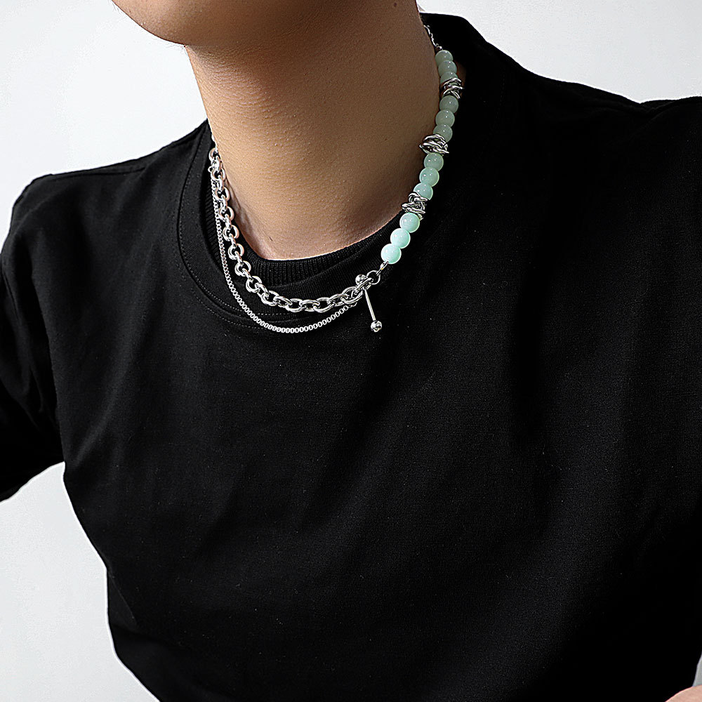 New Chinese style necklace original stone Jade safety buckle mix and match stitching titanium steel neutral national fashion hot girl niche design necklace