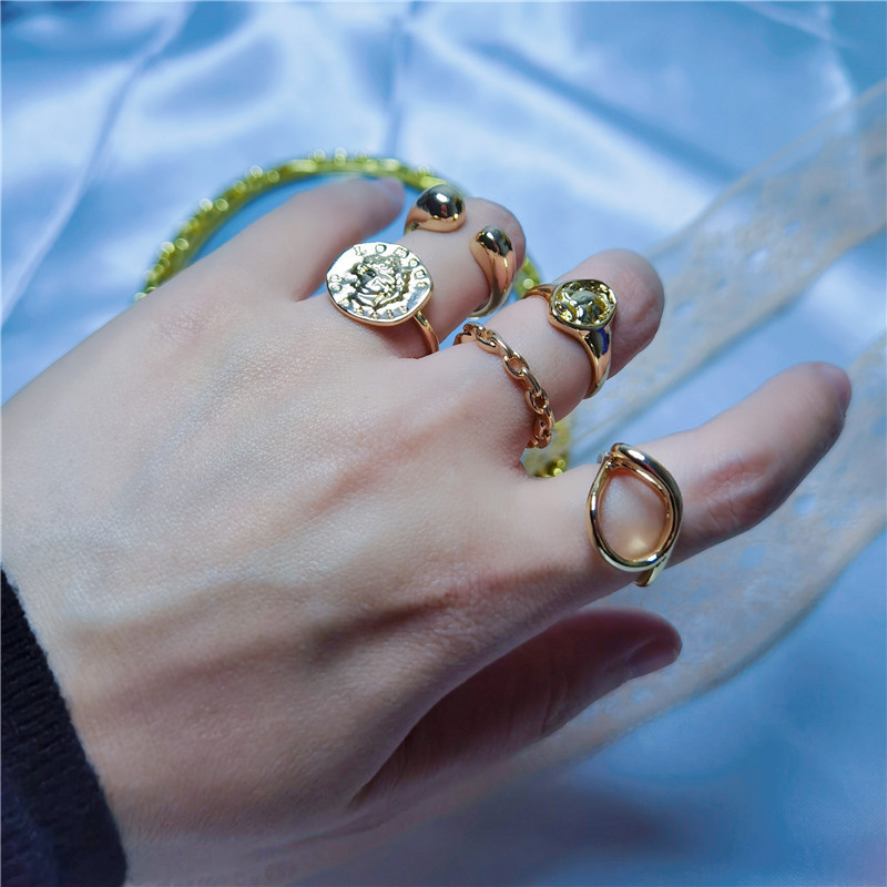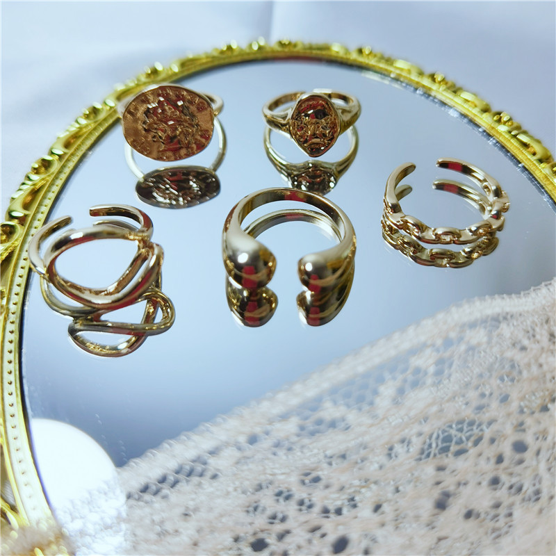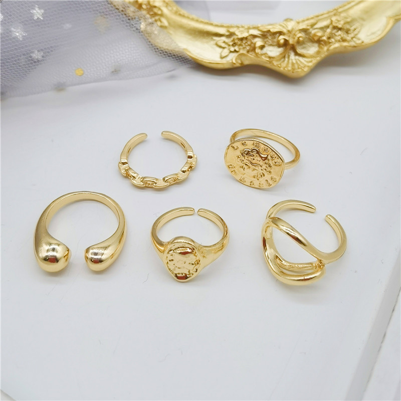 产品名称:几何金色开口戒指套装5件套