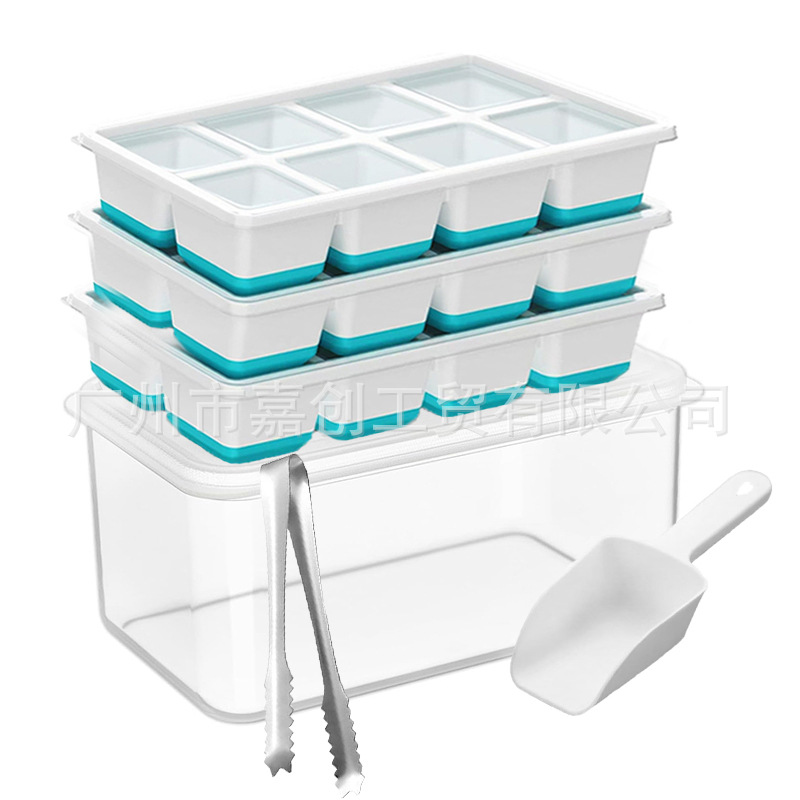 Specifications: Ice box + 4 21 grids (blue) + ice shovel + ice clip - 7-piece set - opp bag/plastic film