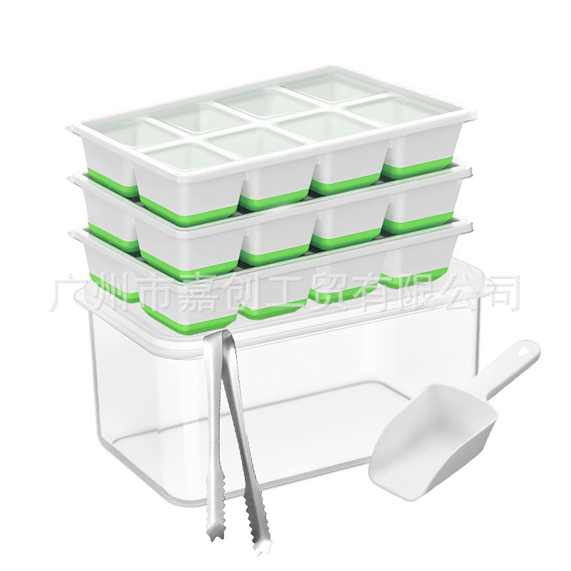 Specifications: Ice box + 3 8-grid ice trays (green) + ice shovel + ice clip - 6-piece set - opp bag/plastic film