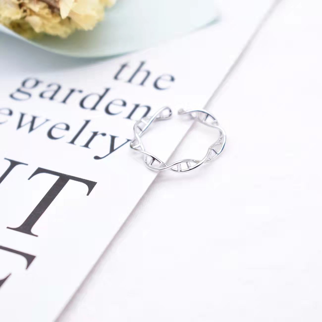 Square line s925 sterling silver interwoven geometric ring women's tide DNA thread ring high sense temperament opening adjustable