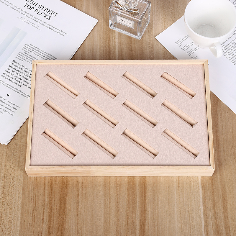Solid Wood Jewelry Bracelet Display Tray 12-Position Jewelry and Jade Storage Box Bracelet Display Display Props Display Stand