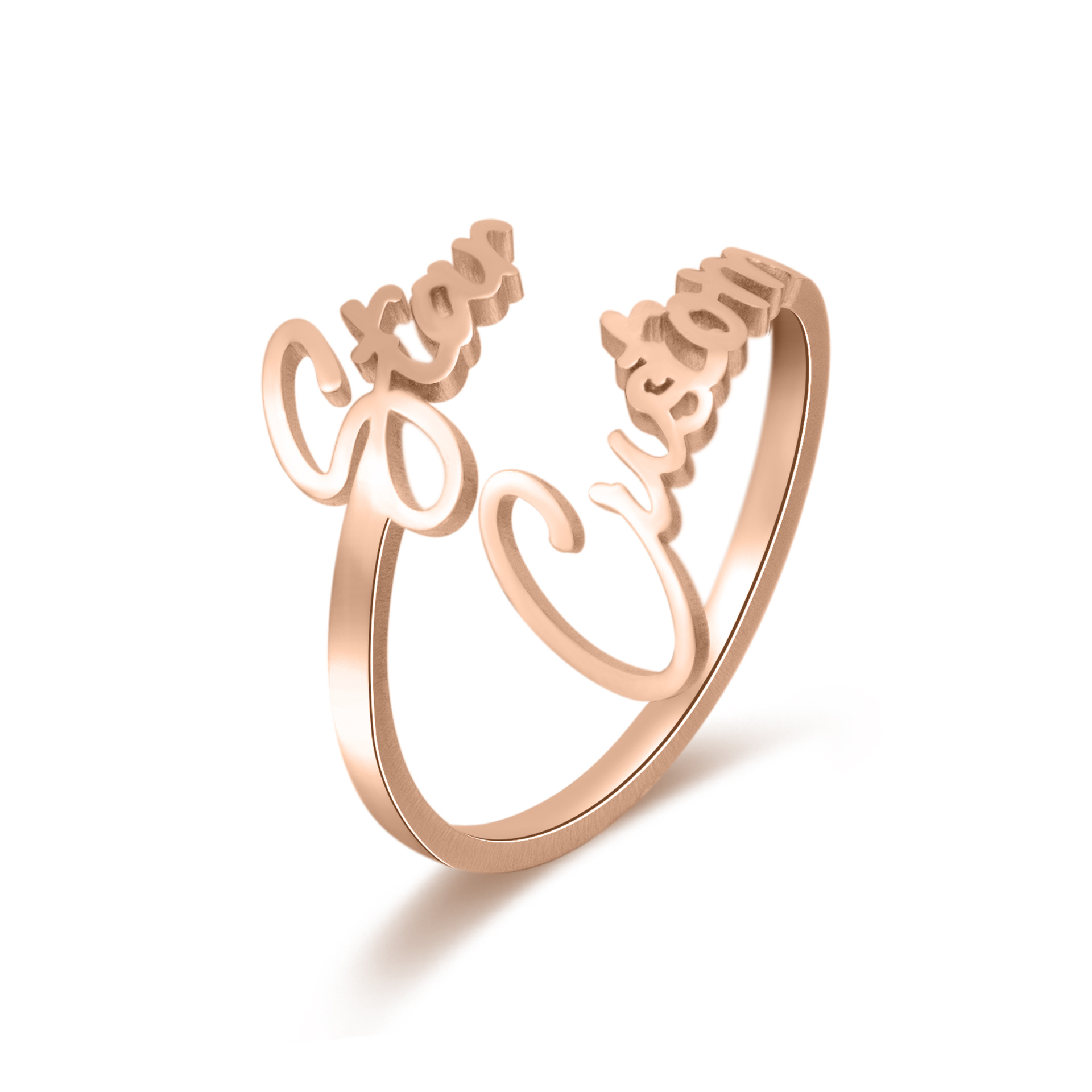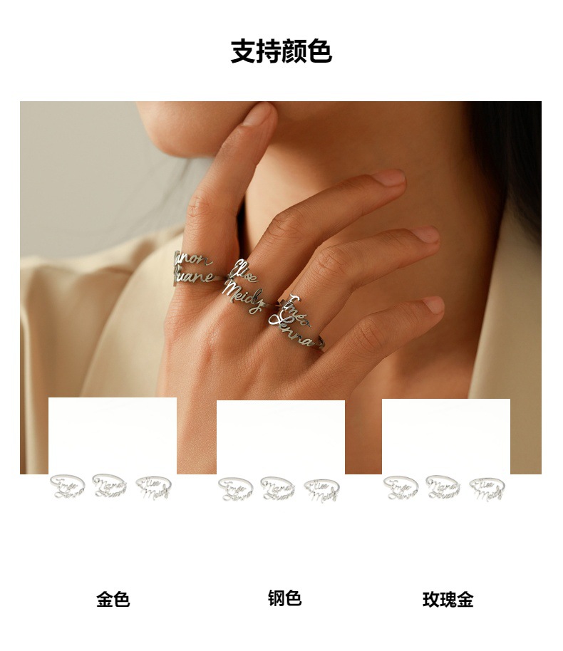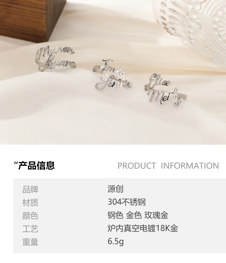[Private custom] Stainless steel English name ring couple double name ring custom 18K gold plating