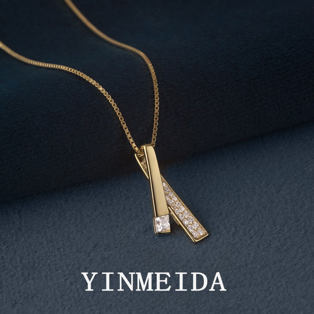 Silver Meida Geometric Diamond Pendant ins Light Luxury Simple Necklace Cold All-match Korean Style Clavicle Chain