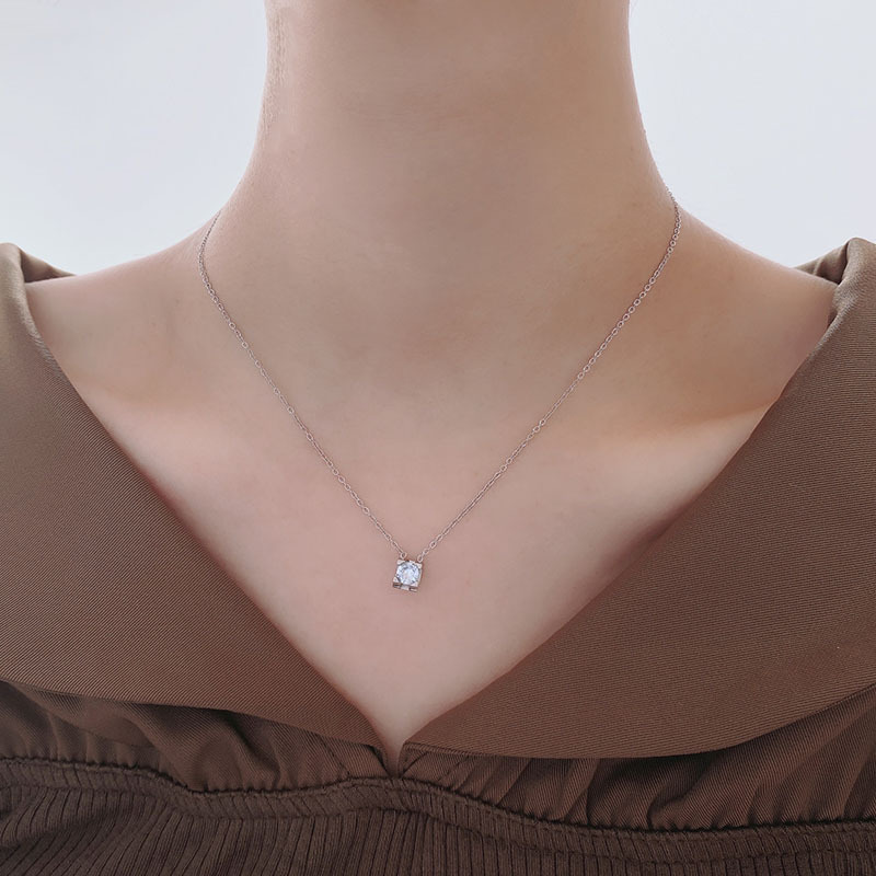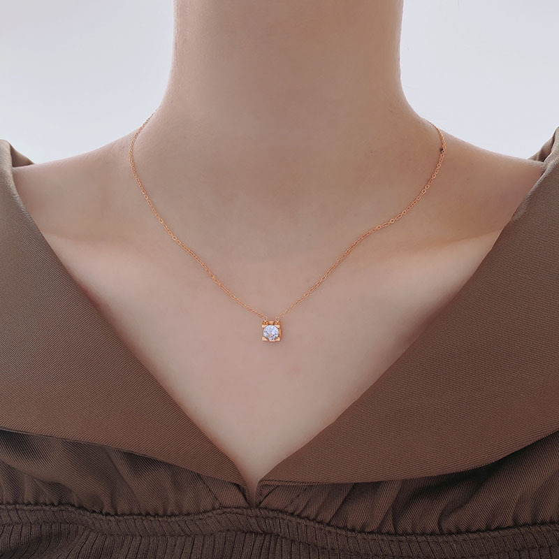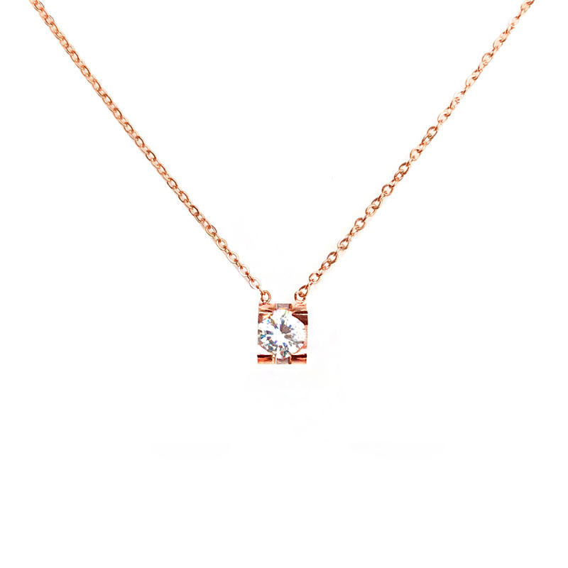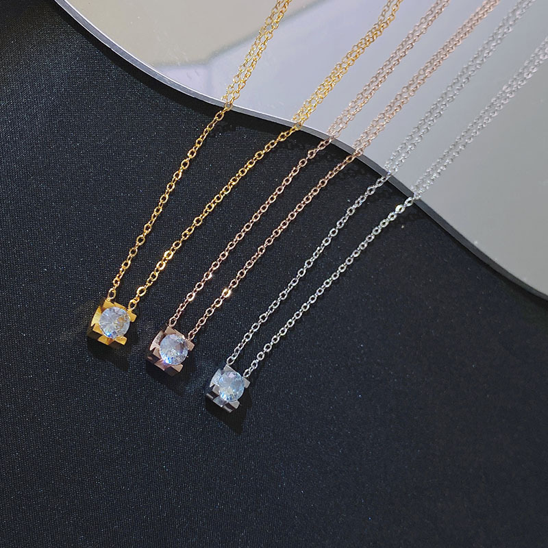 Simple Classic Four-claw Single Diamond Titanium Steel Necklace Women's All-match Niche Design High-end Internet Popular Clavicle Chain Trendy Jewelry