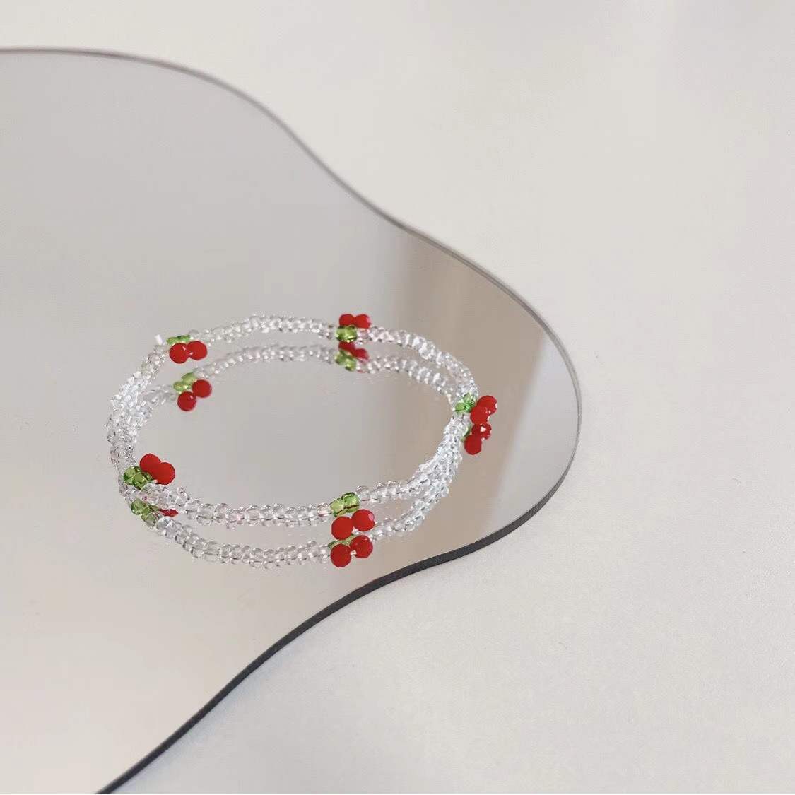 Summer Cherry Beads Beaded Necklace Fresh Joker Fruit Bracelet Ring Korean Hyun-a Hyun-a with hand jewelry wholesale