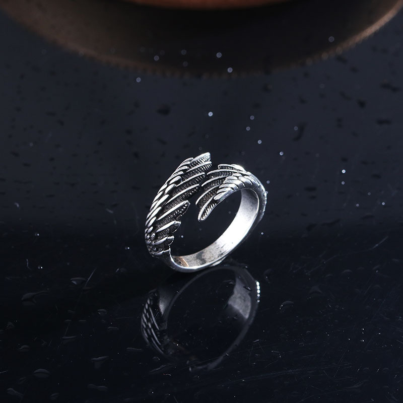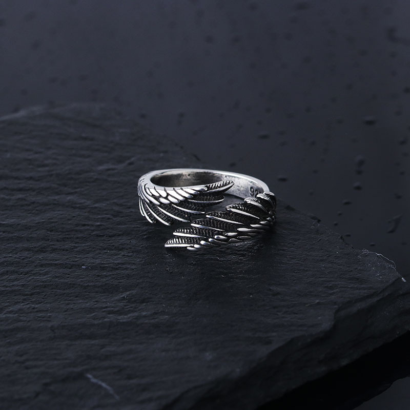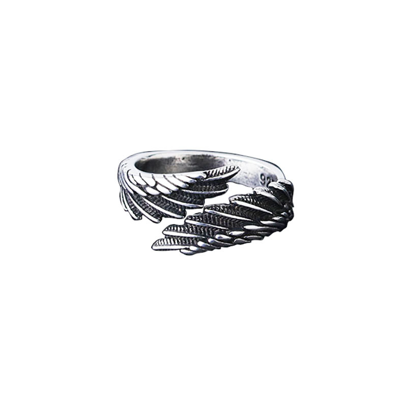 Retro Angel Wings Ring Men's Trendyy Personalized Open Ring Fashionable Anti-Thai Silver Feather Men's Single Ring