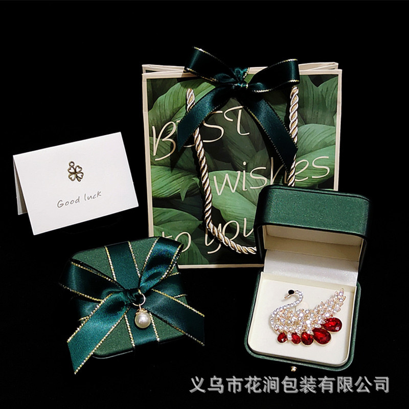 Specification model: Forest green*small pu gold buckle brooch box [box only, ribbon handbag not included]