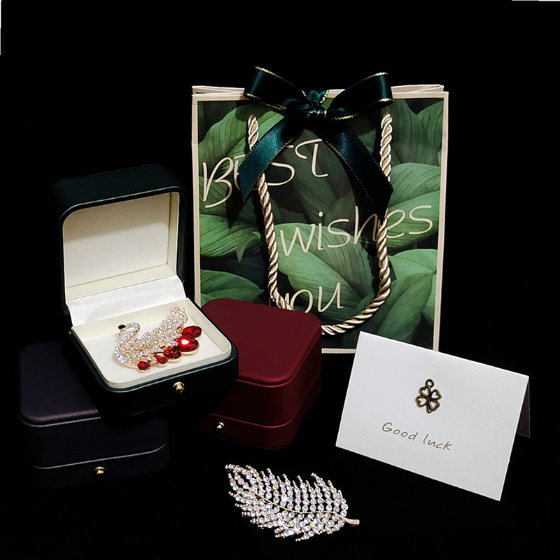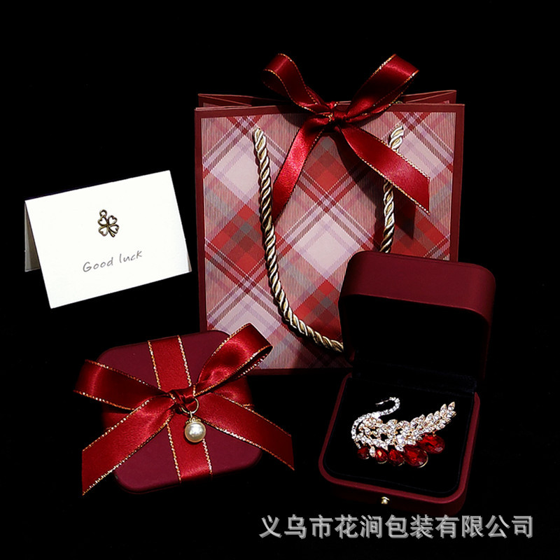 Specification model: Dark red * small pu gold buckle brooch box [box only, ribbon handbag not included]