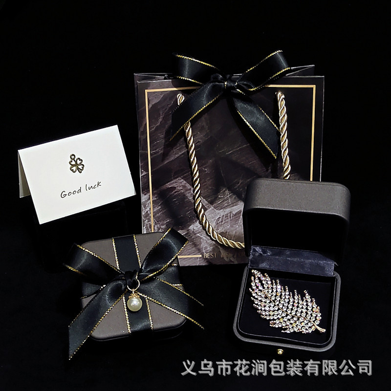 Specification model: Dark gray*large pu gold buckle brooch box [box only, ribbon handbag not included]