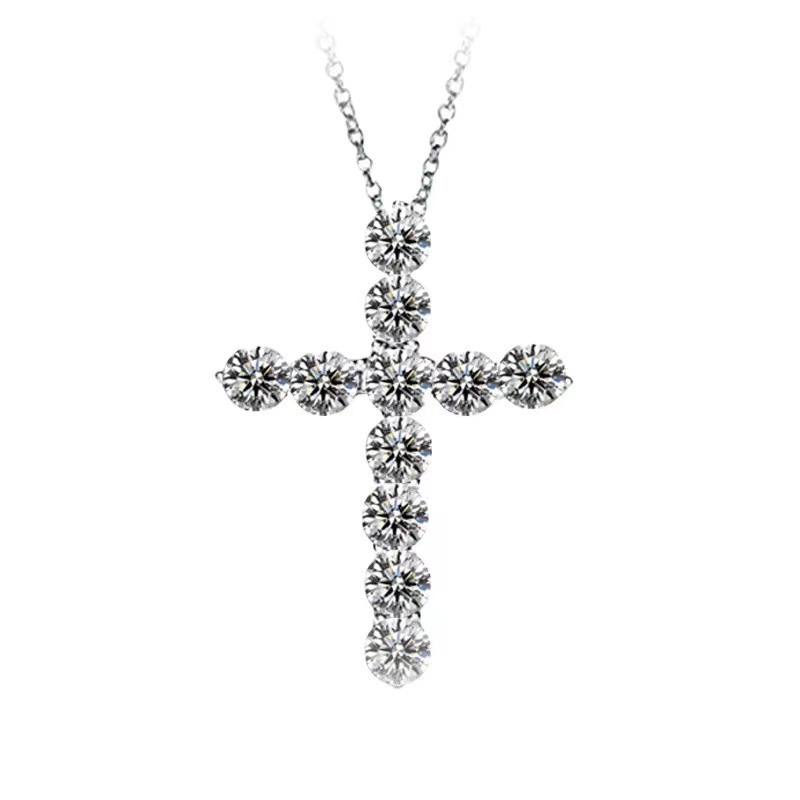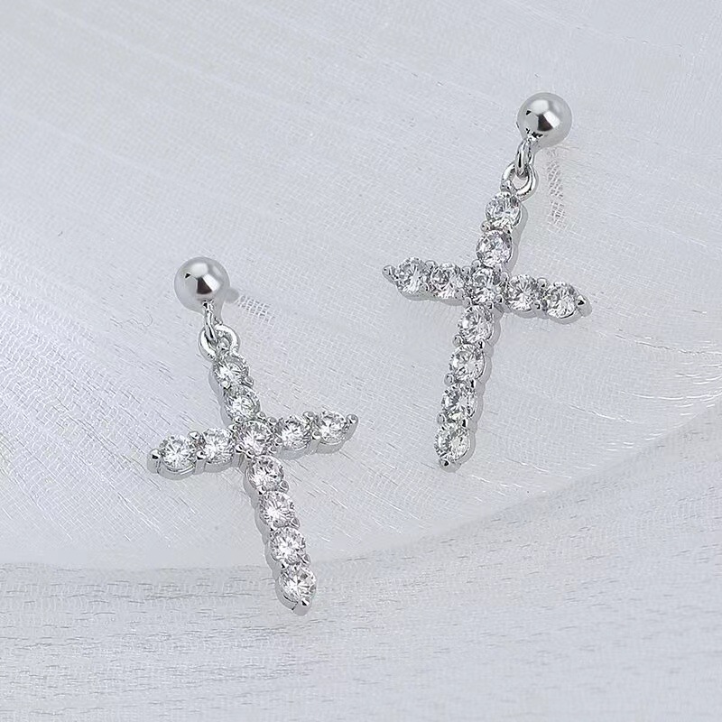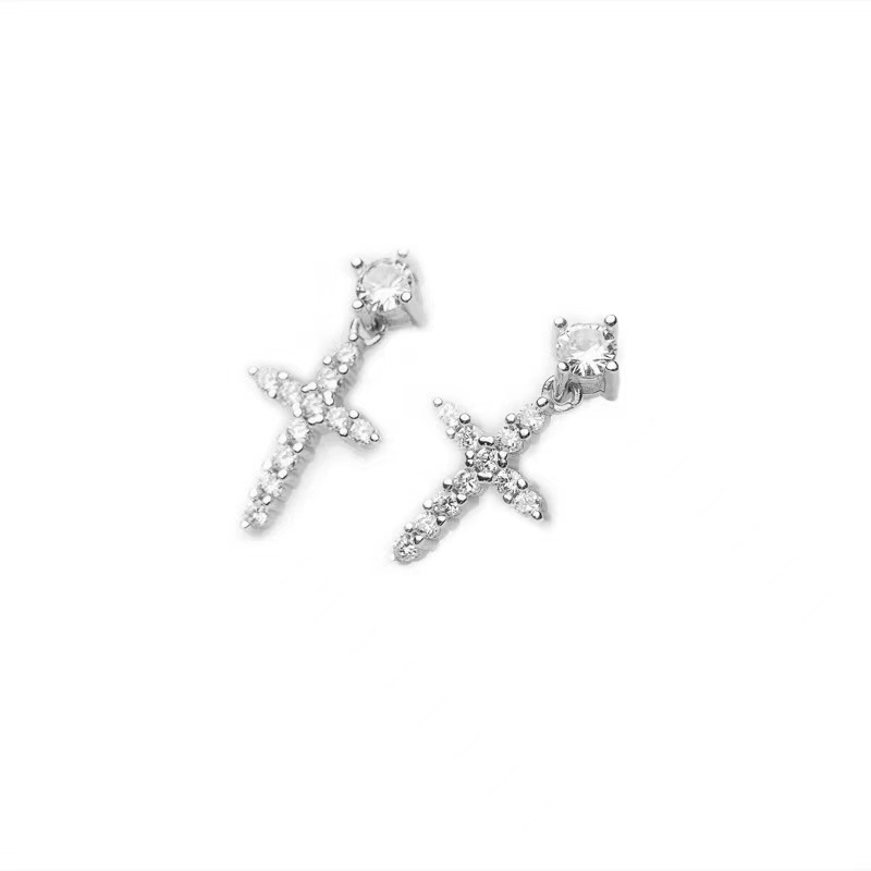 New S925 Silver French Baroque Cross Earrings Korean Internet Celebrity Elegant High-end Diamond Earrings Trendy