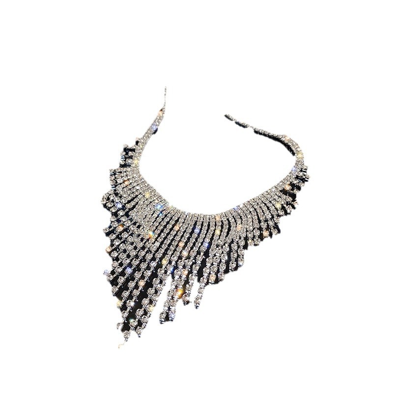 European and American fashion exaggerated personality Fashion necklace spring new diamond tassel necklace Internet celebrity design sense necklace for women