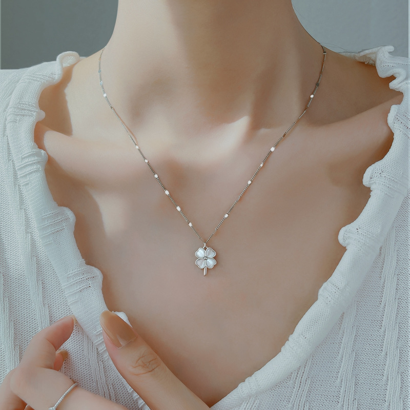 Four-leaf Clover Necklace Women's 2022 New Lightweight Opal Niche Design High-grade Clavicle Chain Simple Necklace Chain